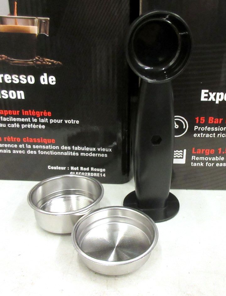 1.5 L water tank. Built-in steam wand. 15 Bar high pressure extraction. Customer return.