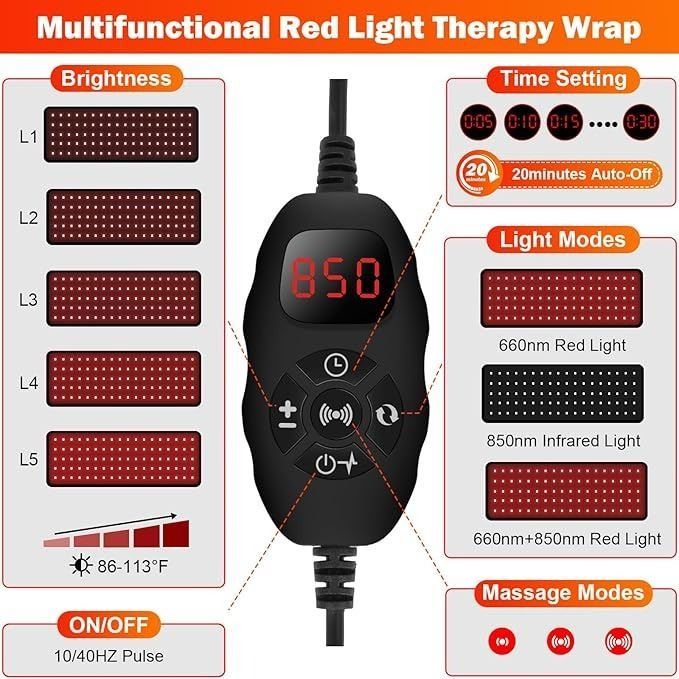 - Red Light Therapy Belt for Body, 660nm&850nm Infrared Red Light Therapy Device with Vibration & Pulse, Massage Heating Pad LED Therapy Wrap for Back Shoulder Waist Muscle Pain Relief at Home