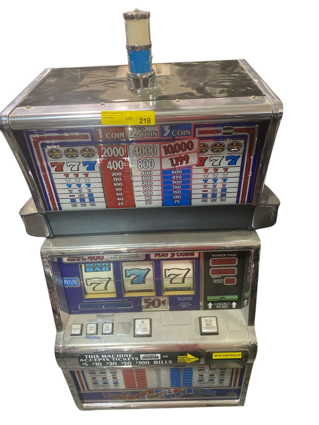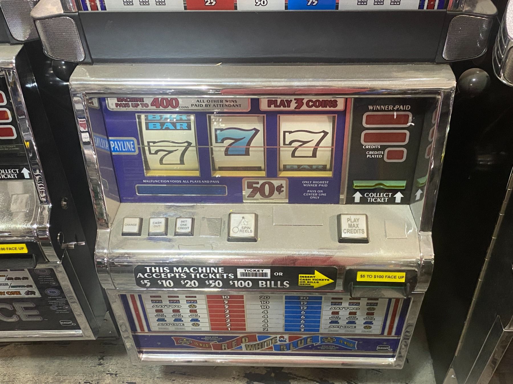 Red White & Blue Casino Slot Machine - 50¢ Denomination, 3-Credit Play
