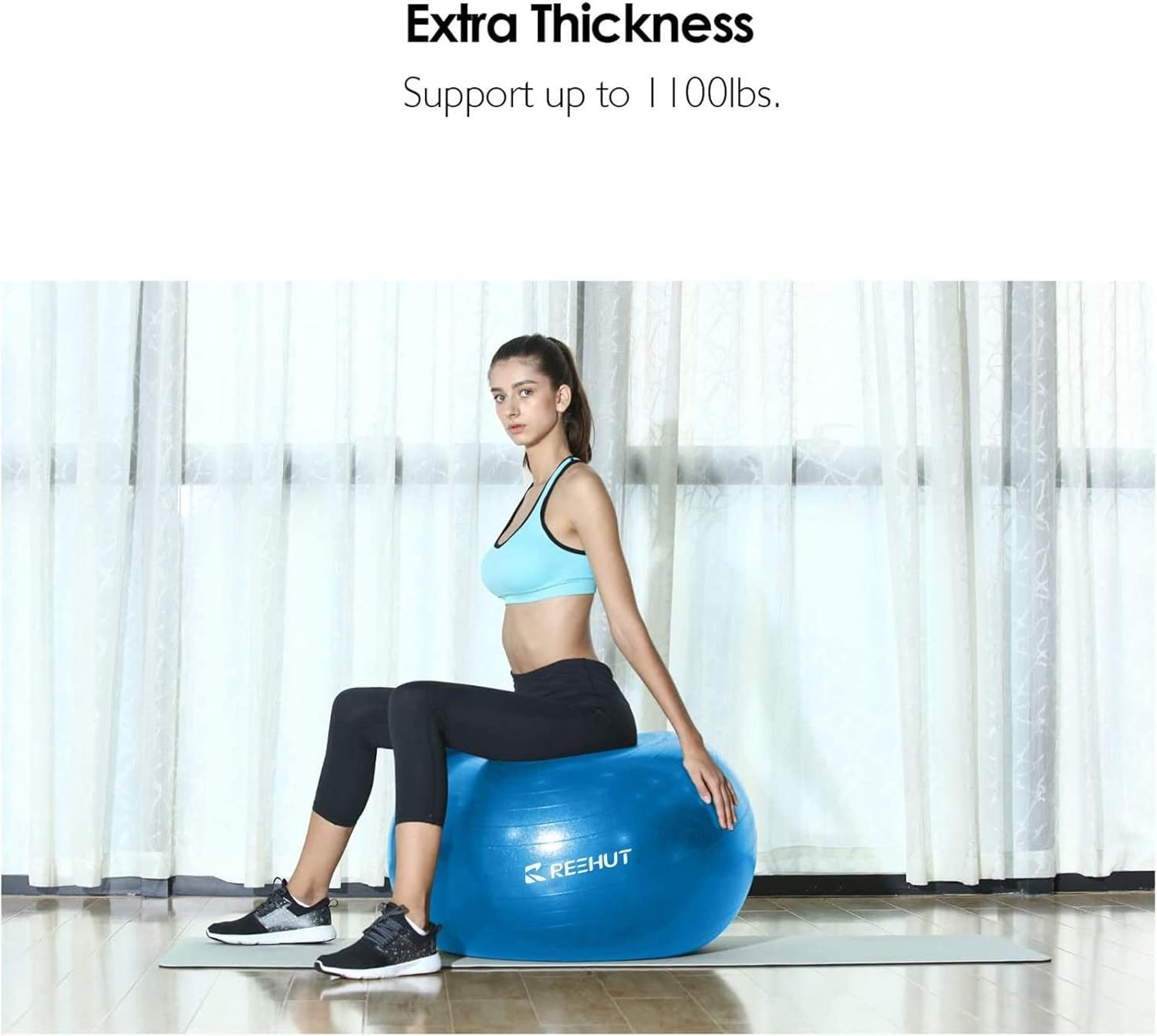 - REEHUT Anti-Burst Core Exercise Ball w/Pump & Manual for Yoga, Workout, Fitness (Blue, 48-55cm)