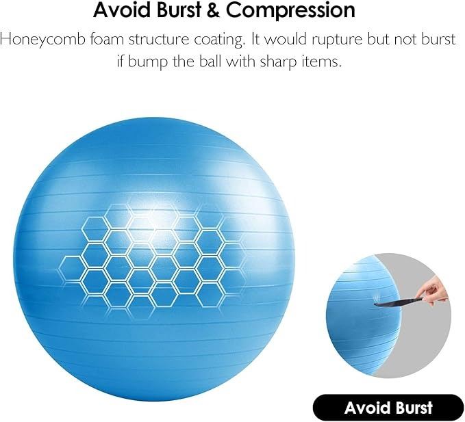 - REEHUT Anti-Burst Core Exercise Ball w/Pump & Manual for Yoga, Workout, Fitness (Blue, 48-55cm)