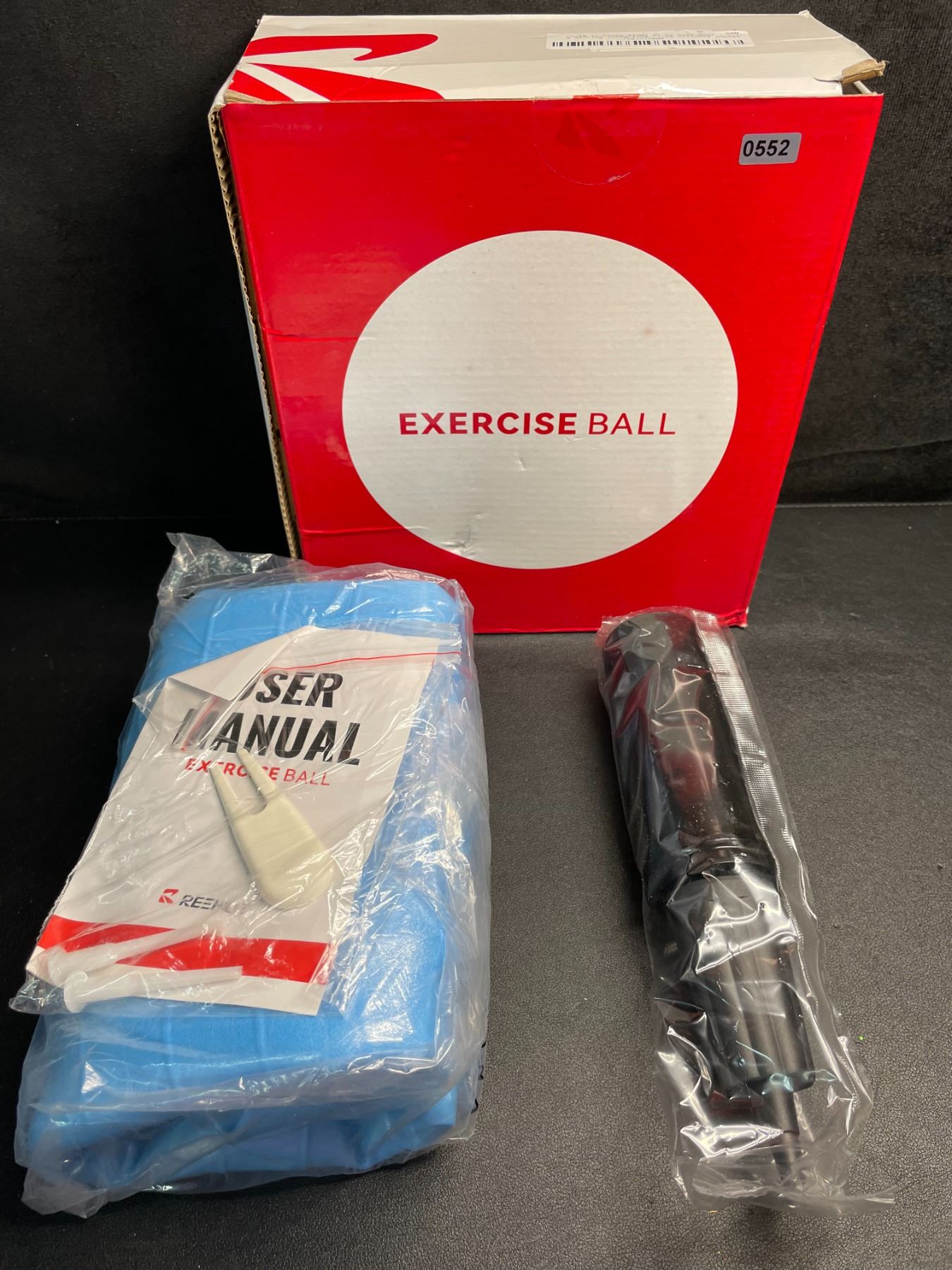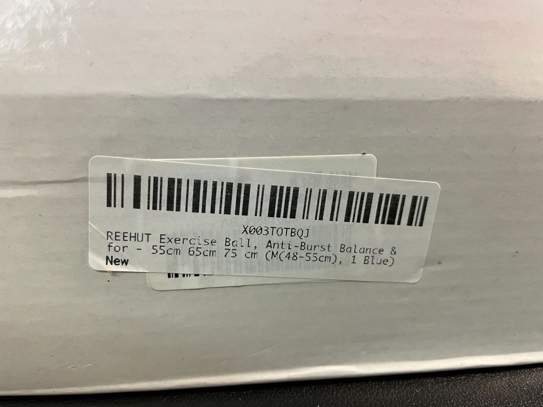 - REEHUT Anti-Burst Core Exercise Ball w/Pump & Manual for Yoga, Workout, Fitness (Blue, 48-55cm)