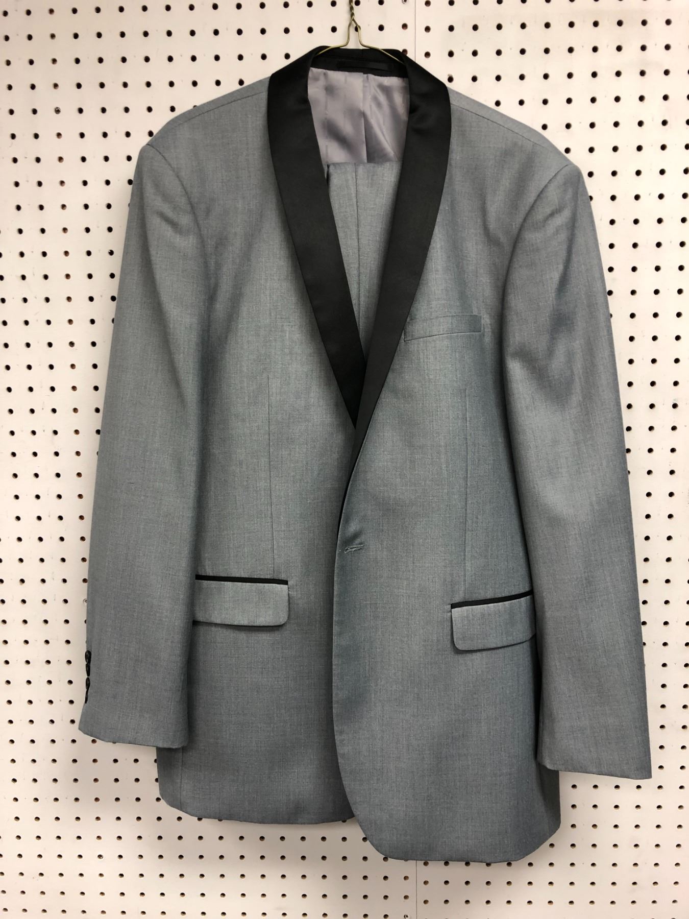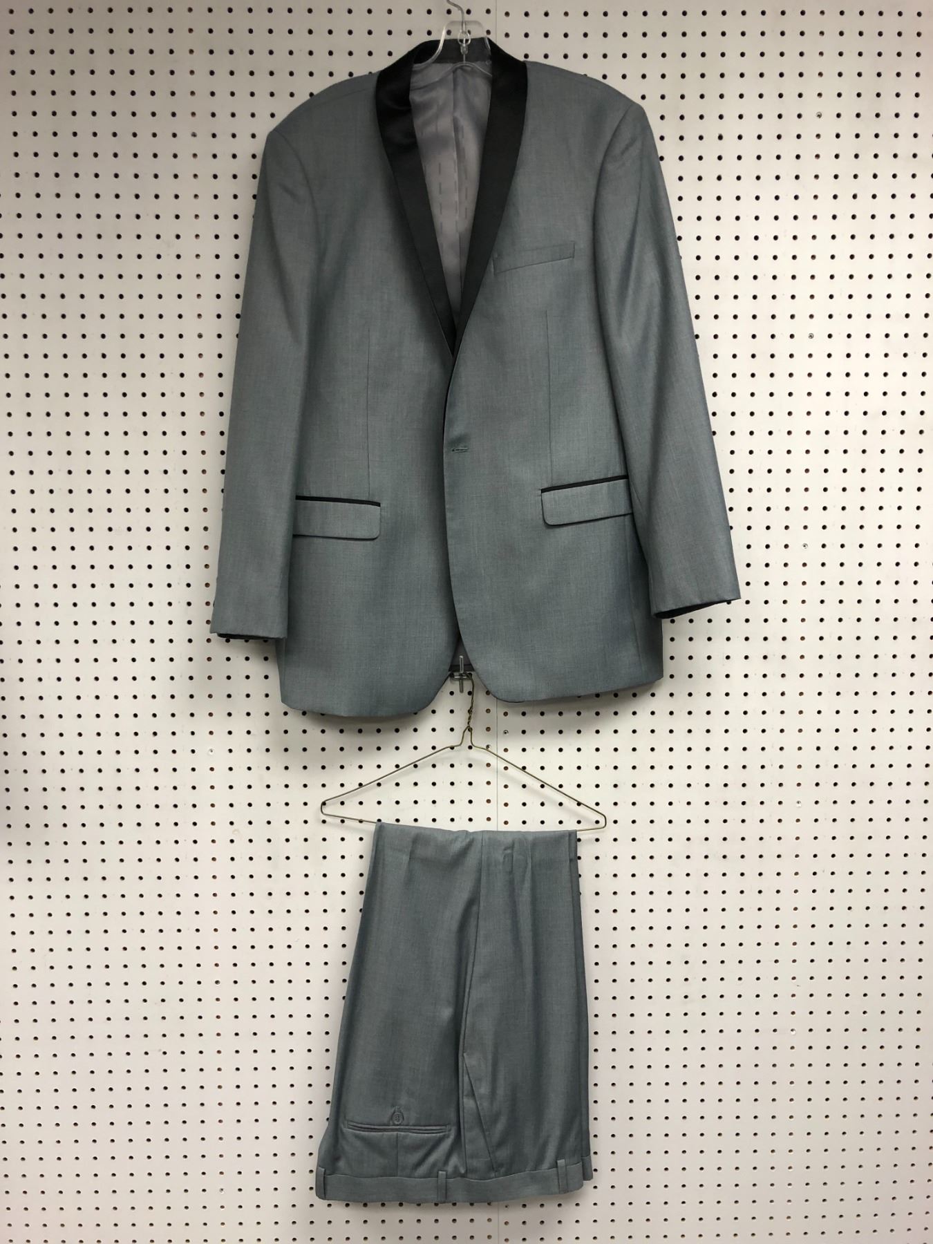 Renoir men's grey w/ black trim 2pc. suit size L 44/38