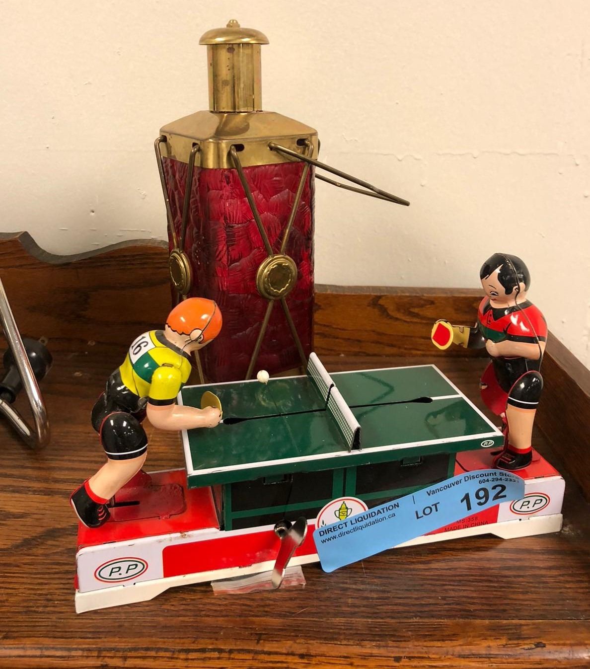 Retro Tin Toy Ping pong set and glass lamp