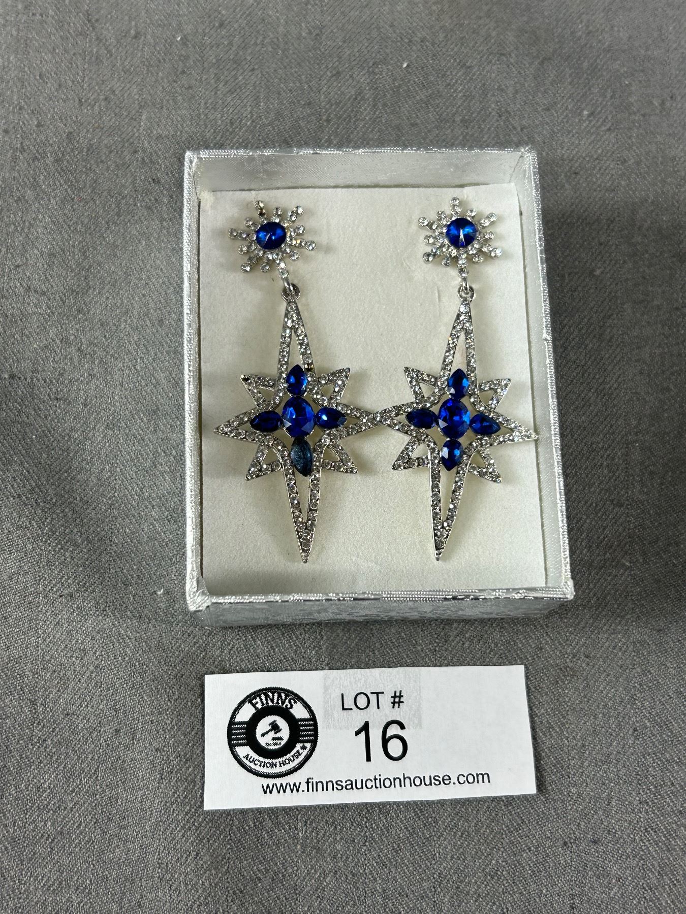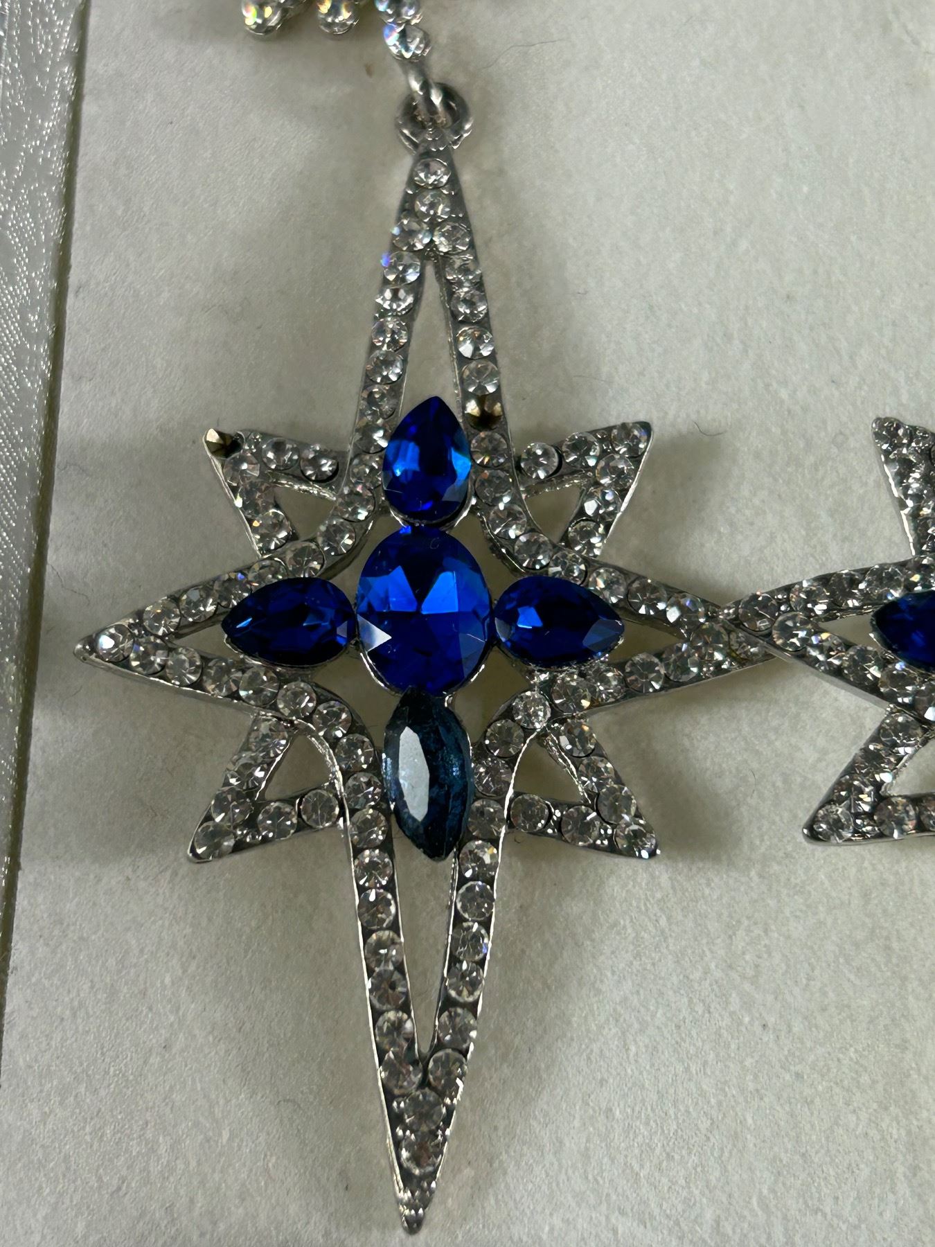 Rhinestone Starburst Sapphire Blue Dangle Earrings