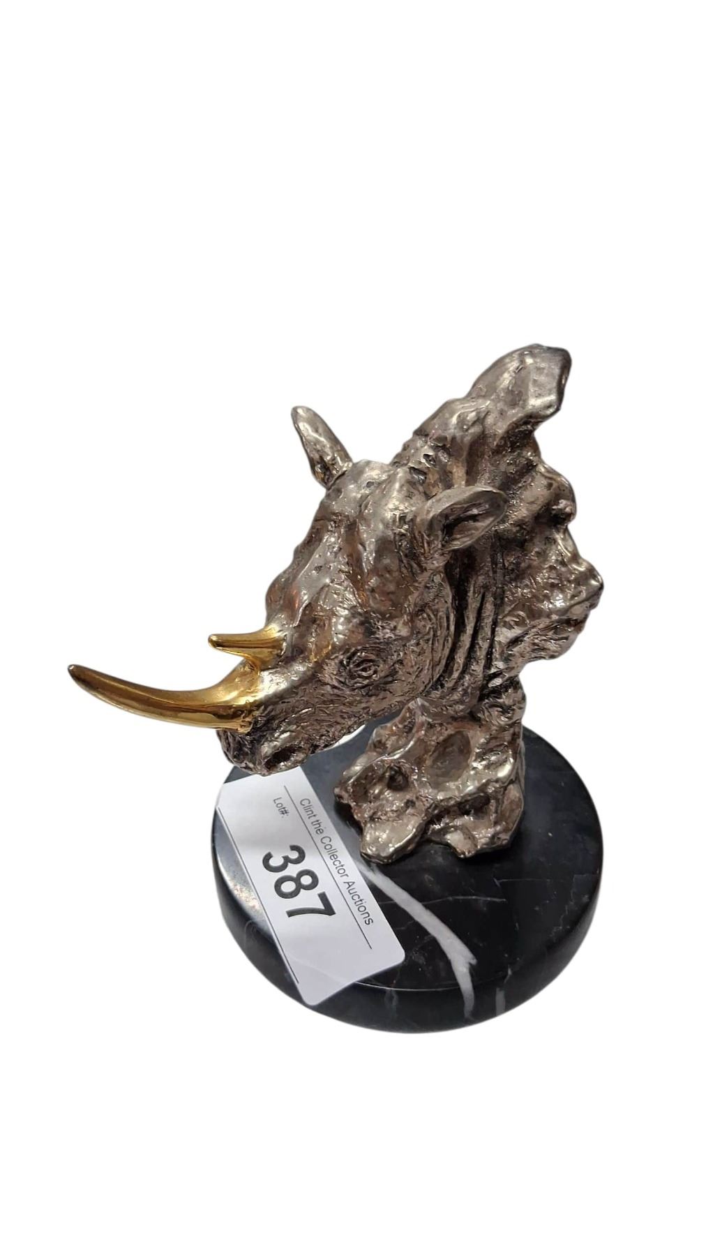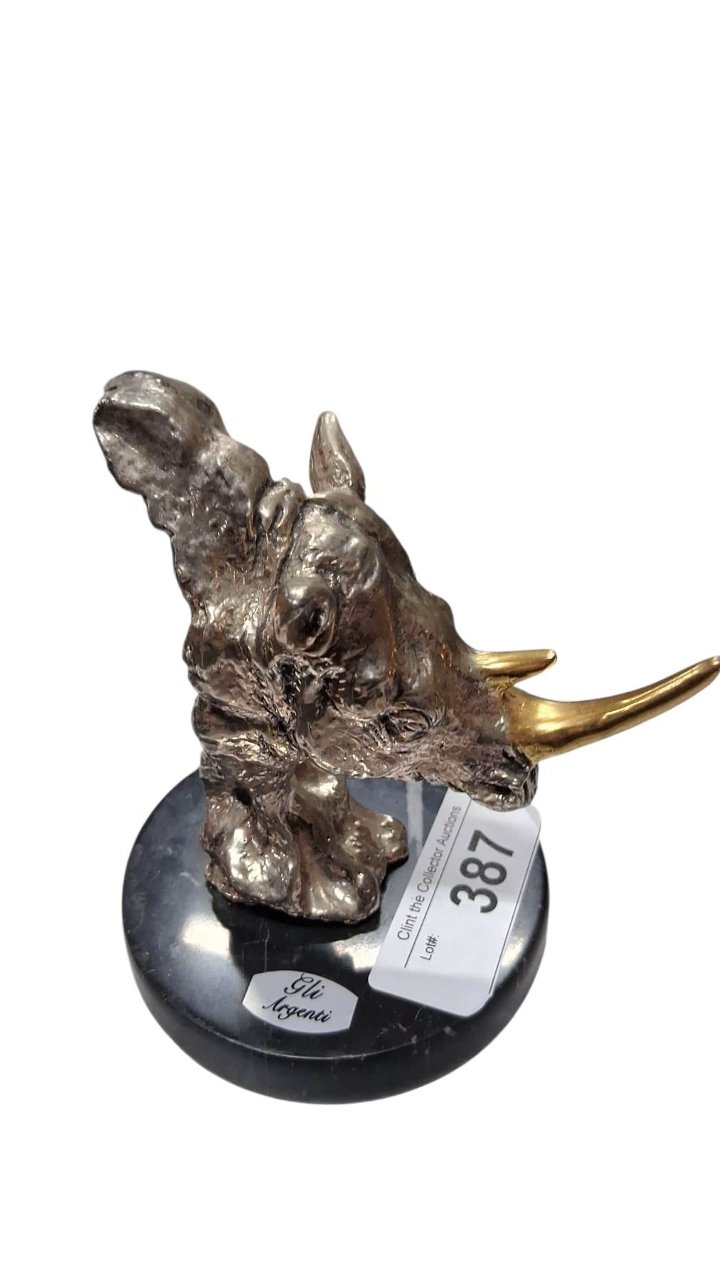 Rhino head "Gli Argenti" metal sculpture 5" tall
