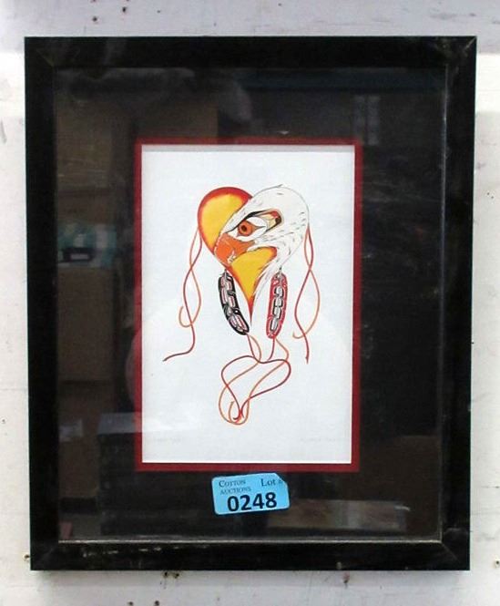 Northern Tutchone Nation. Double matted. 12" x 14" framed.