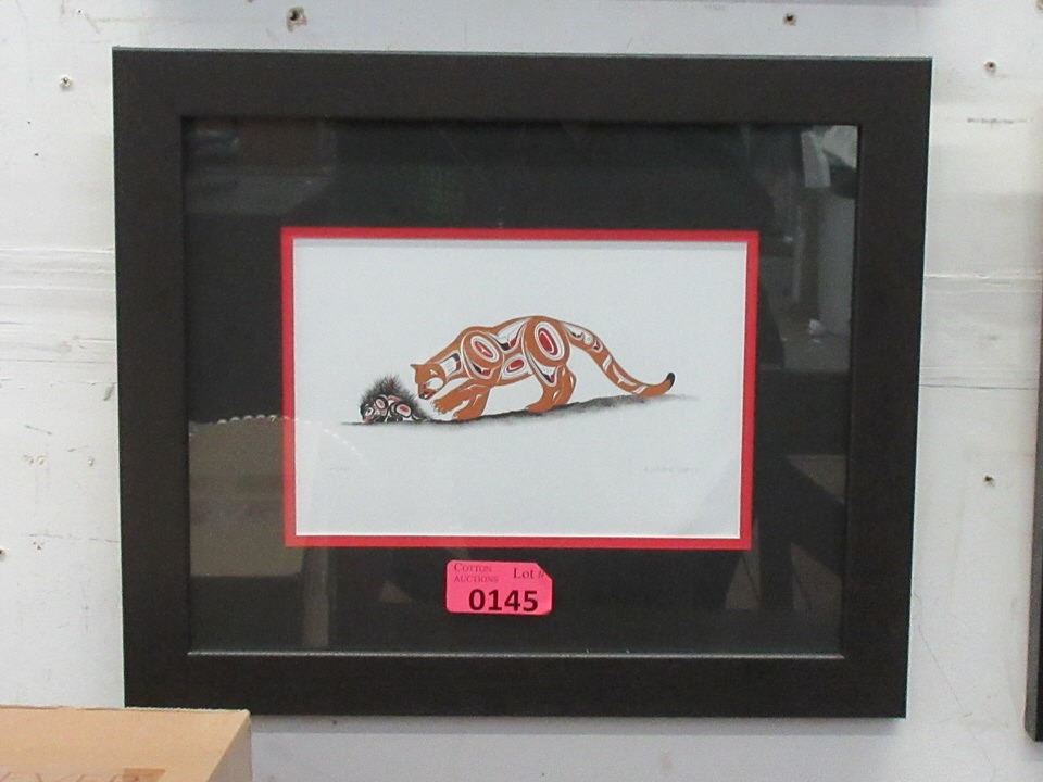Cougar and Porcupine. Northern Tutchone Nation. Double matted. 12" x 14" framed.