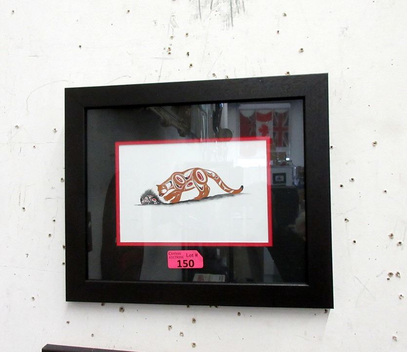 Cougar and Porcupine. Northern Tutchone Nation. Double matted. 12" x 14" framed.