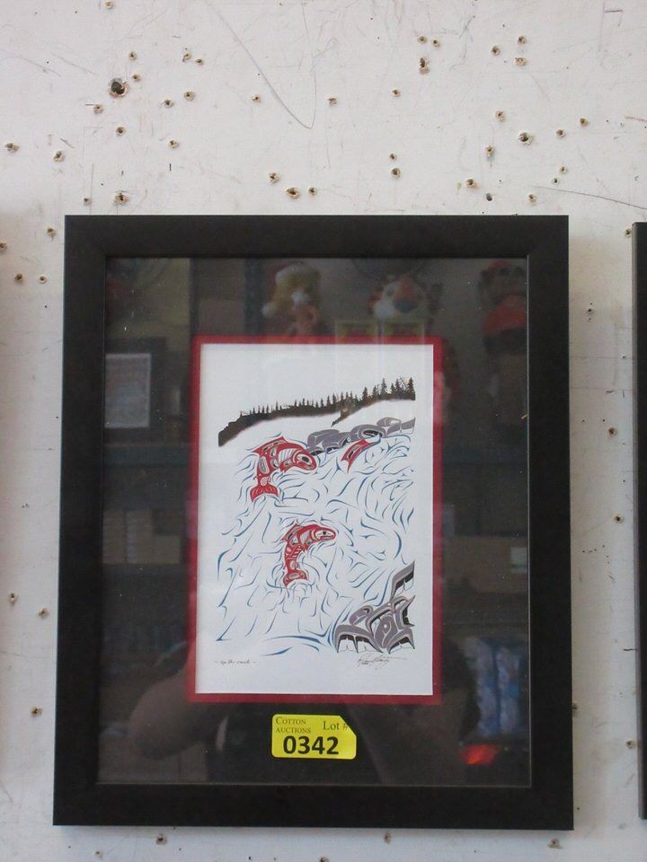 "Up the Creek". Northern Lights Dancer". Northern Tutchone Nation. Double matted. 12" x 14" framed.