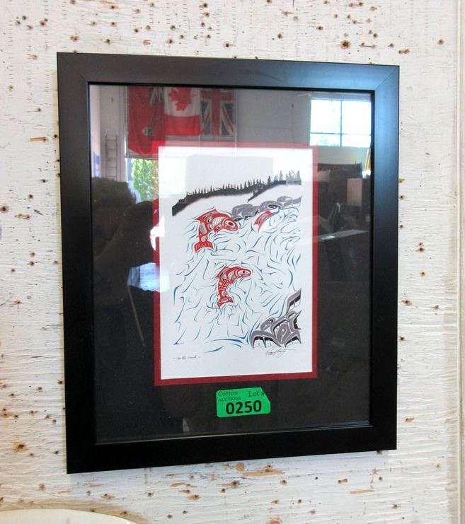 "Up the Creek". Northern Lights Dancer". Northern Tutchone Nation. Double matted. 12" x 14" framed.
