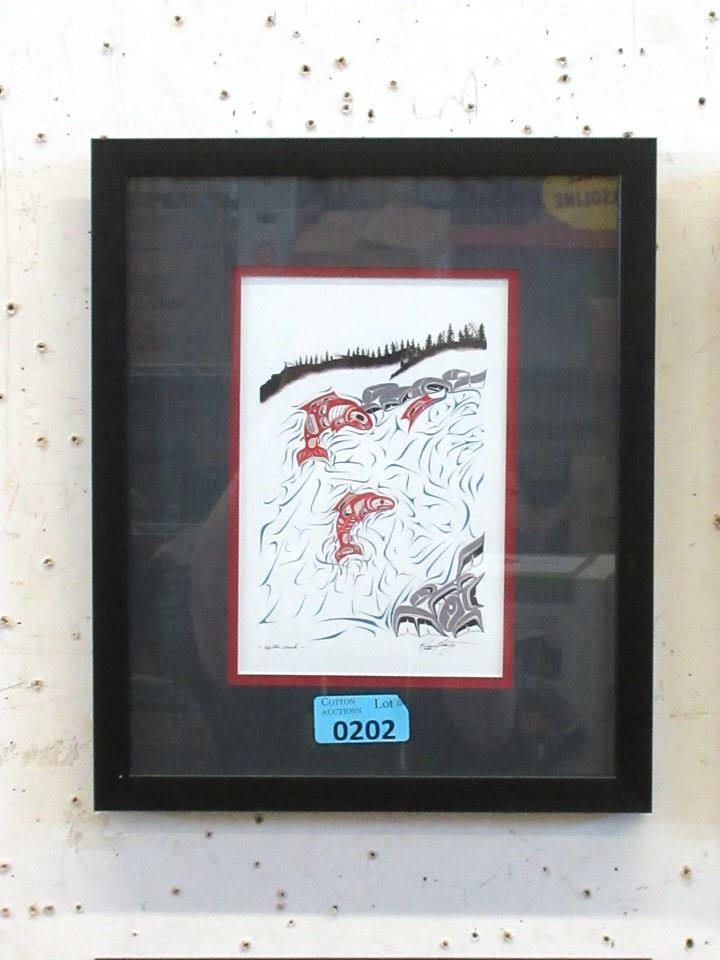 Northern Tutchone Nation. Double matted. 12" x 14" framed.