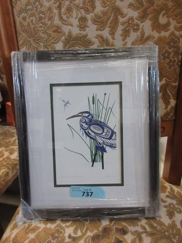 "Hummingbird & Blue Heron". Double matted. 13" x 15" framed