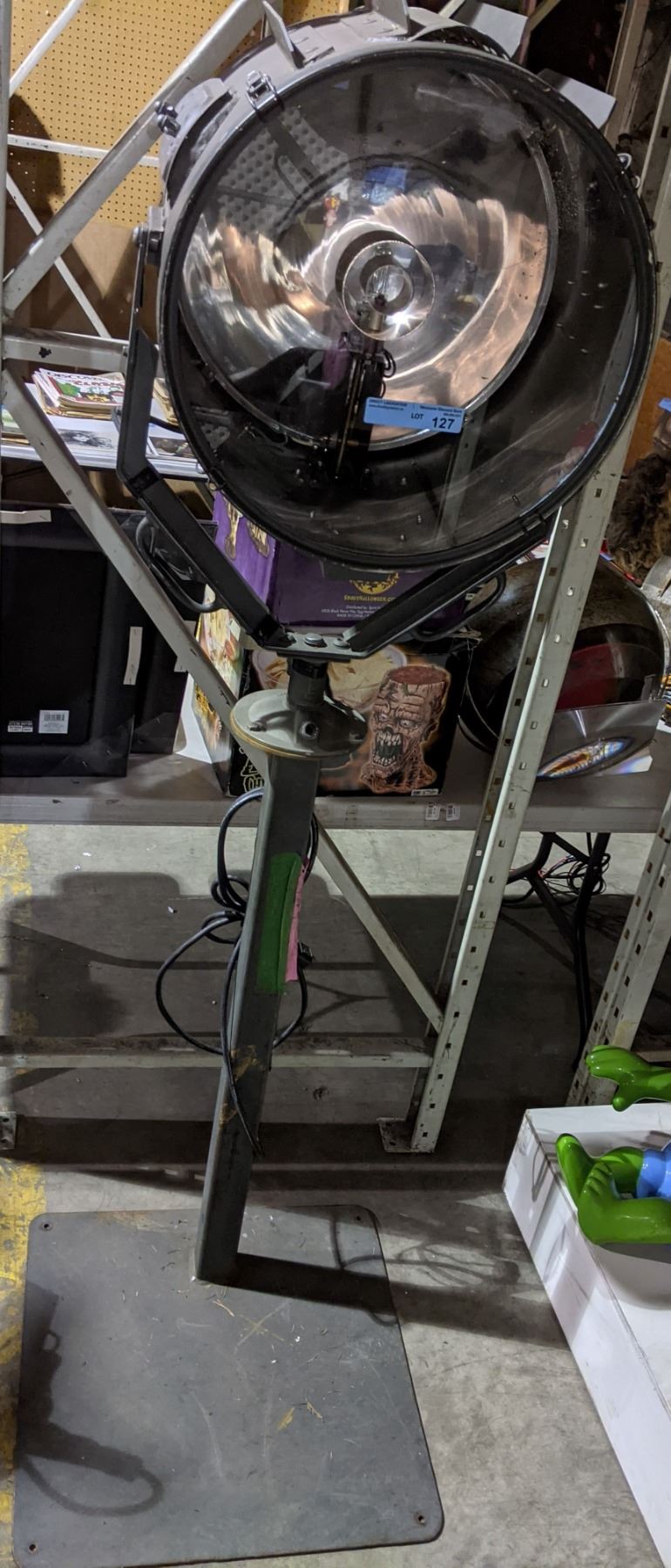 Used on a number of shows but made famous guard tower lights in a concentration camp for Ridley Scott's "The Terror" Large spotlights metal on stands working condition.Circus carnival promotion sky spotlights.