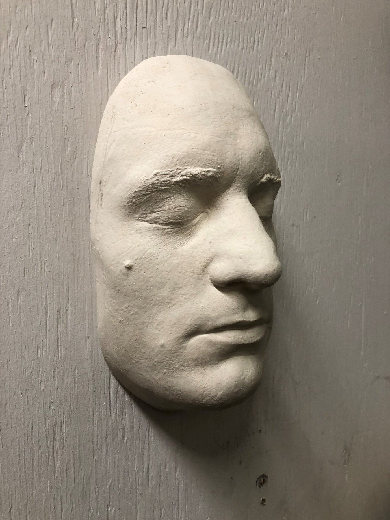 They were made by alginate & gypsona then poured into finished hydrocal molds. They were used as a template of the actors face to create scars prosthetics & masks etc.