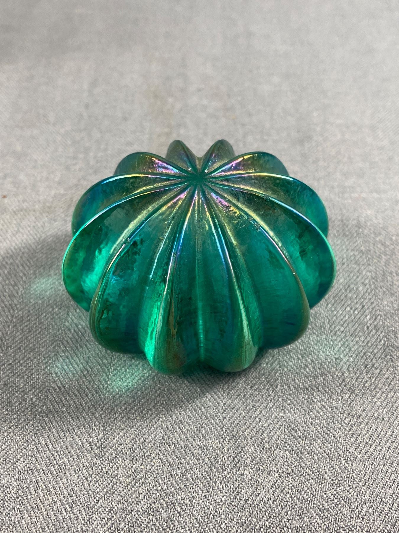 Robert Held Art Glass Sea Urchin Paperweight Iridescent Teal Blue Paper Label Sticker