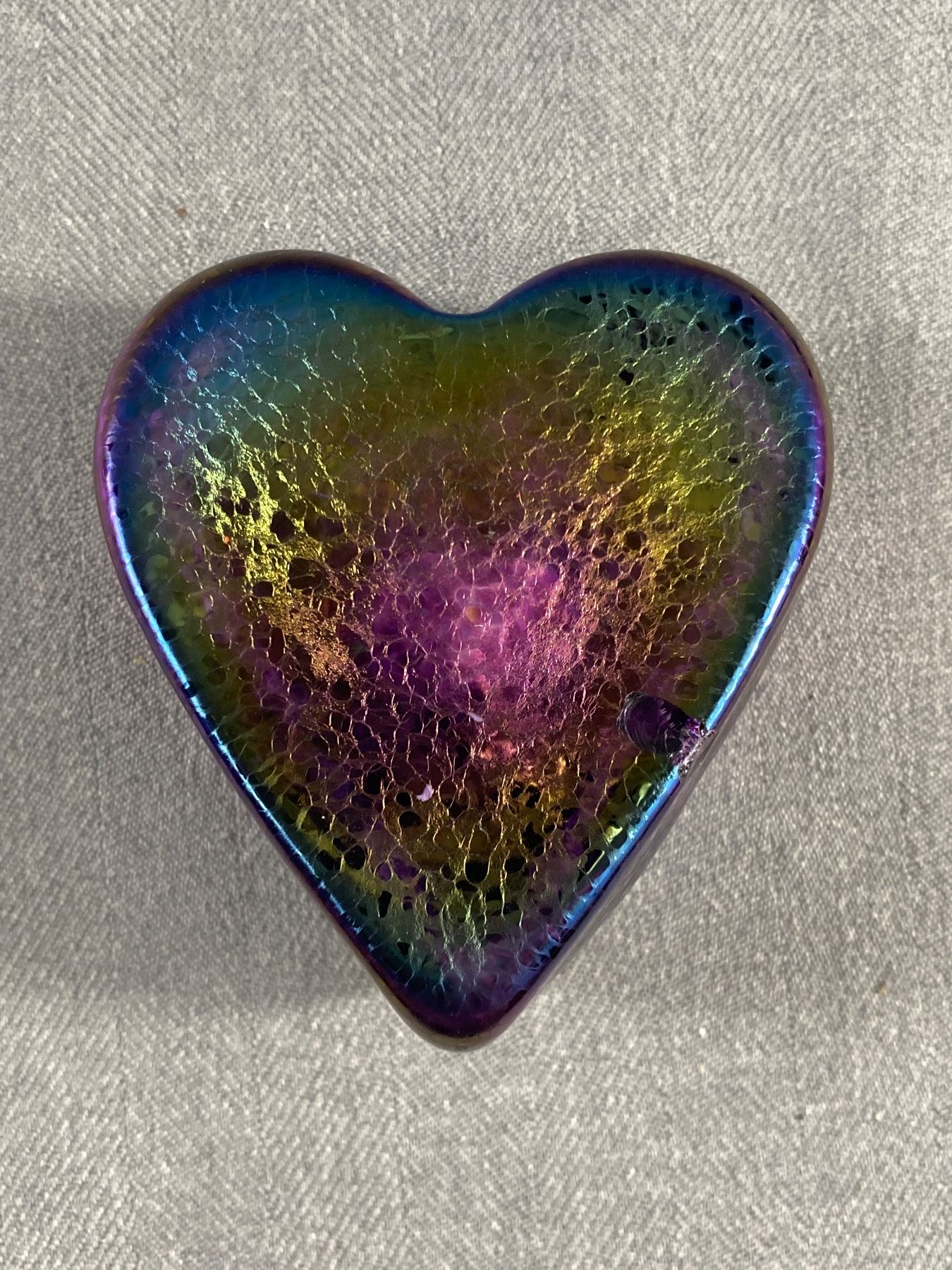 Robert Held Handmade in Canada Art Glass Heart Shape Paperweight Small Chip