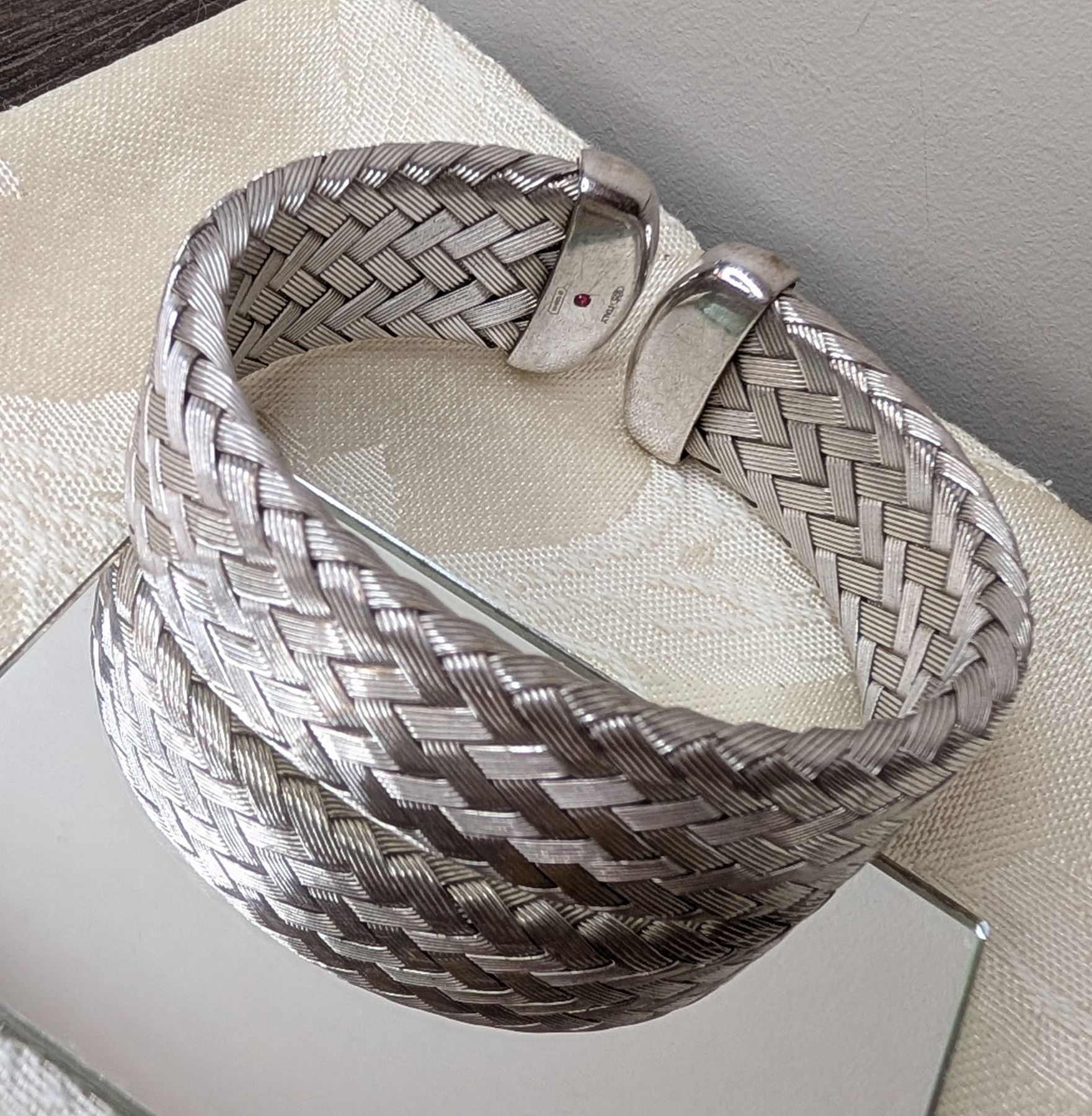 Roberto Coin Sterling Silver Weave cuff bracelet with signature ruby