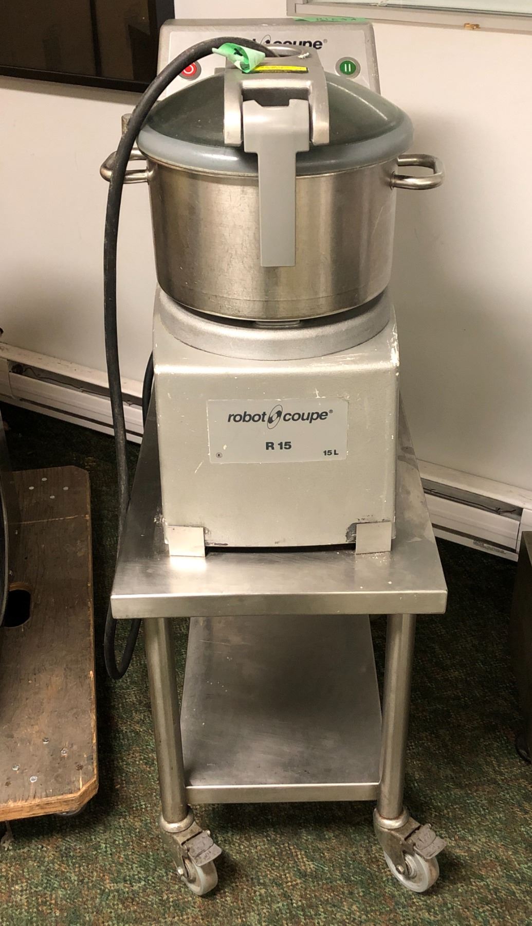 Robot Coupe commercial 15L R15 vertical food processor 4.5HP serial# 5950111613K-09 w/ rolling stainless steel stand - replacement value $12,500