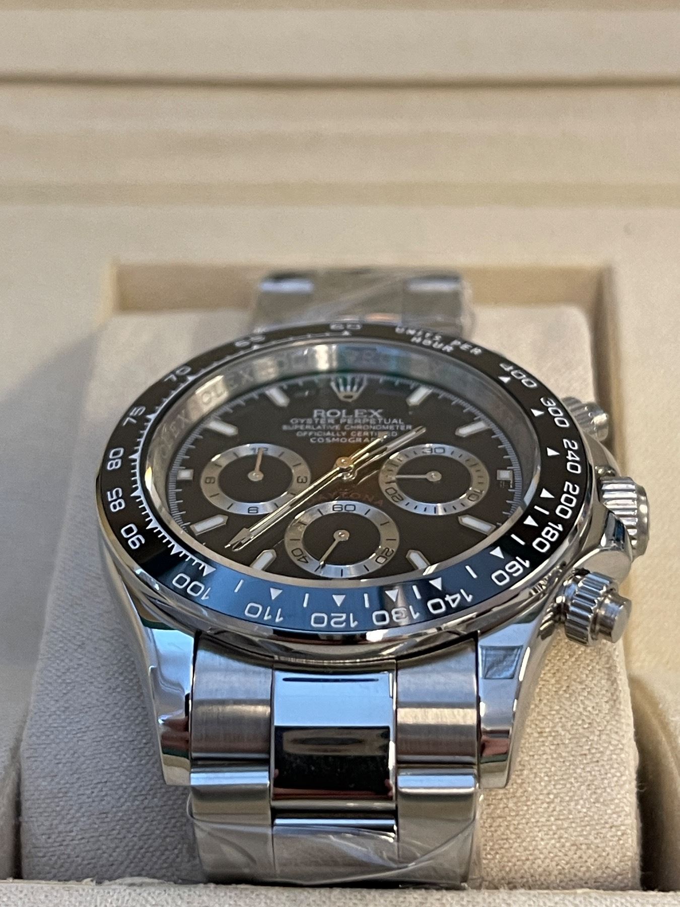 Rolex Daytona Black Dial - New Style Super Clone w/Accessories - Case, Bag, Paperwork, Etc.