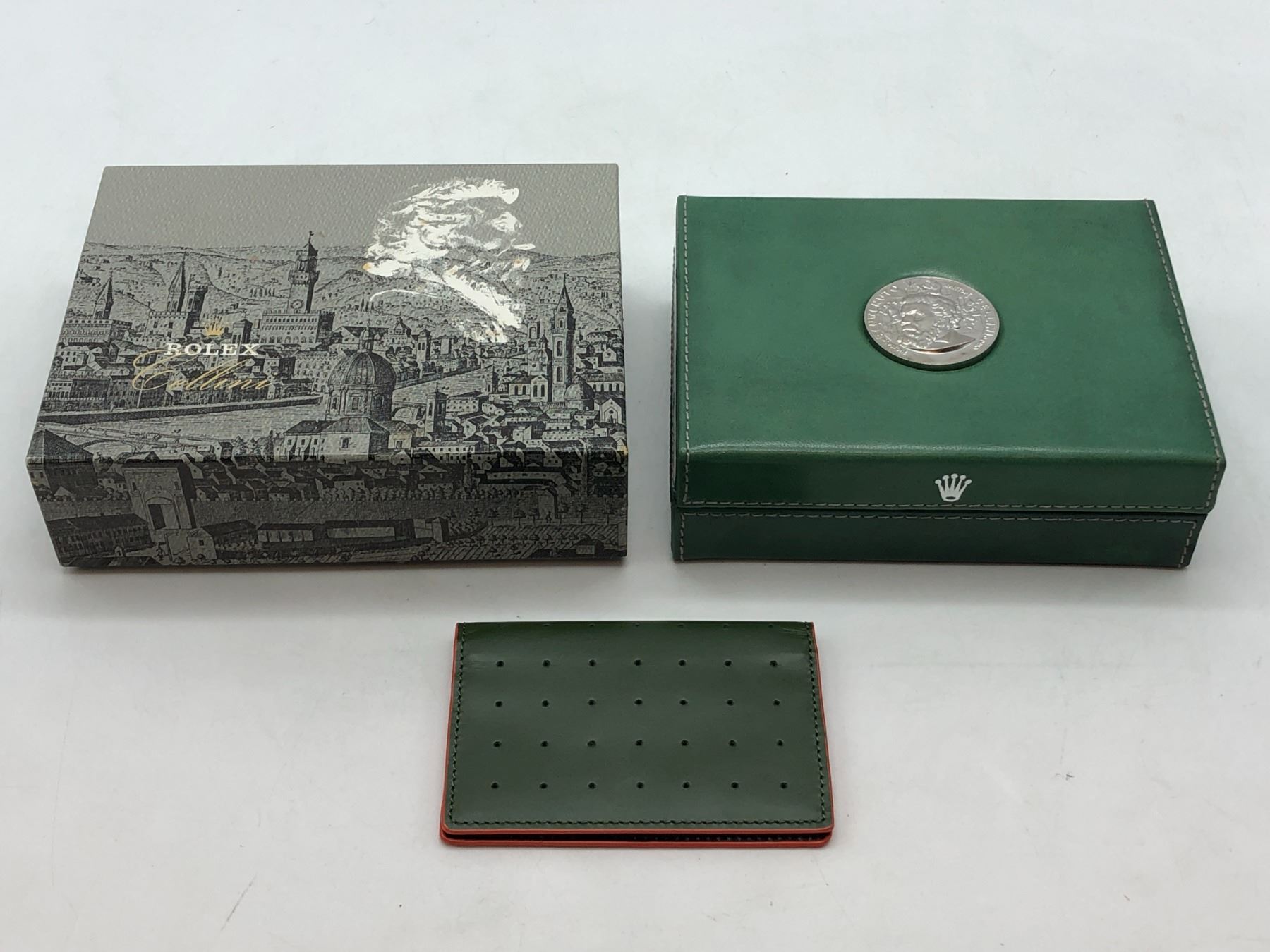 "Rolex " - Vintage "Cellini Benvenuto" Green Leather Watch Box - Box Only