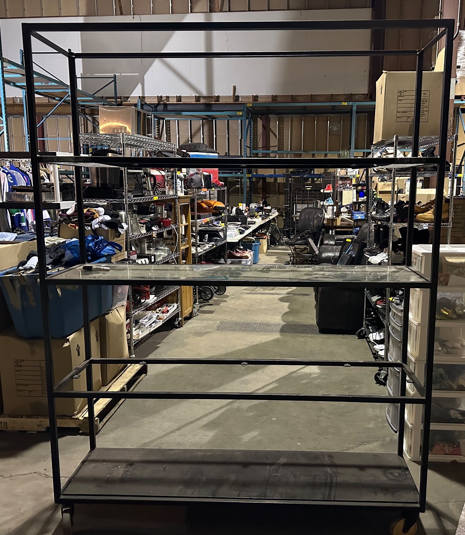 Rolling 4-tier shelving unit missing shelves (approx. 87in H)