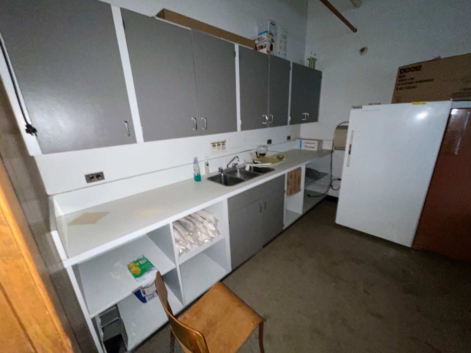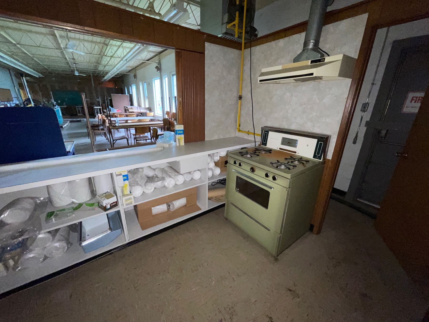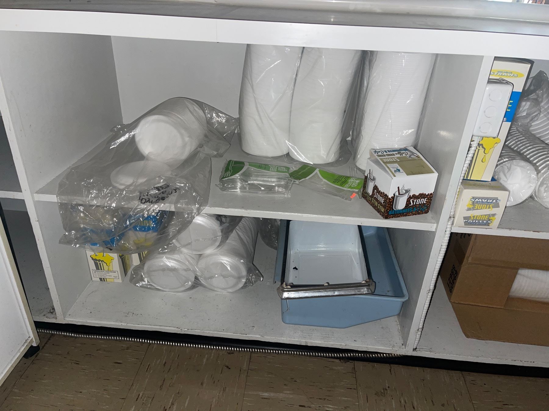 Room lot - Contents of Kitchen Behind Cafeteria Window Including Fridge, Vintage Stove & Contents In/On Cabinets