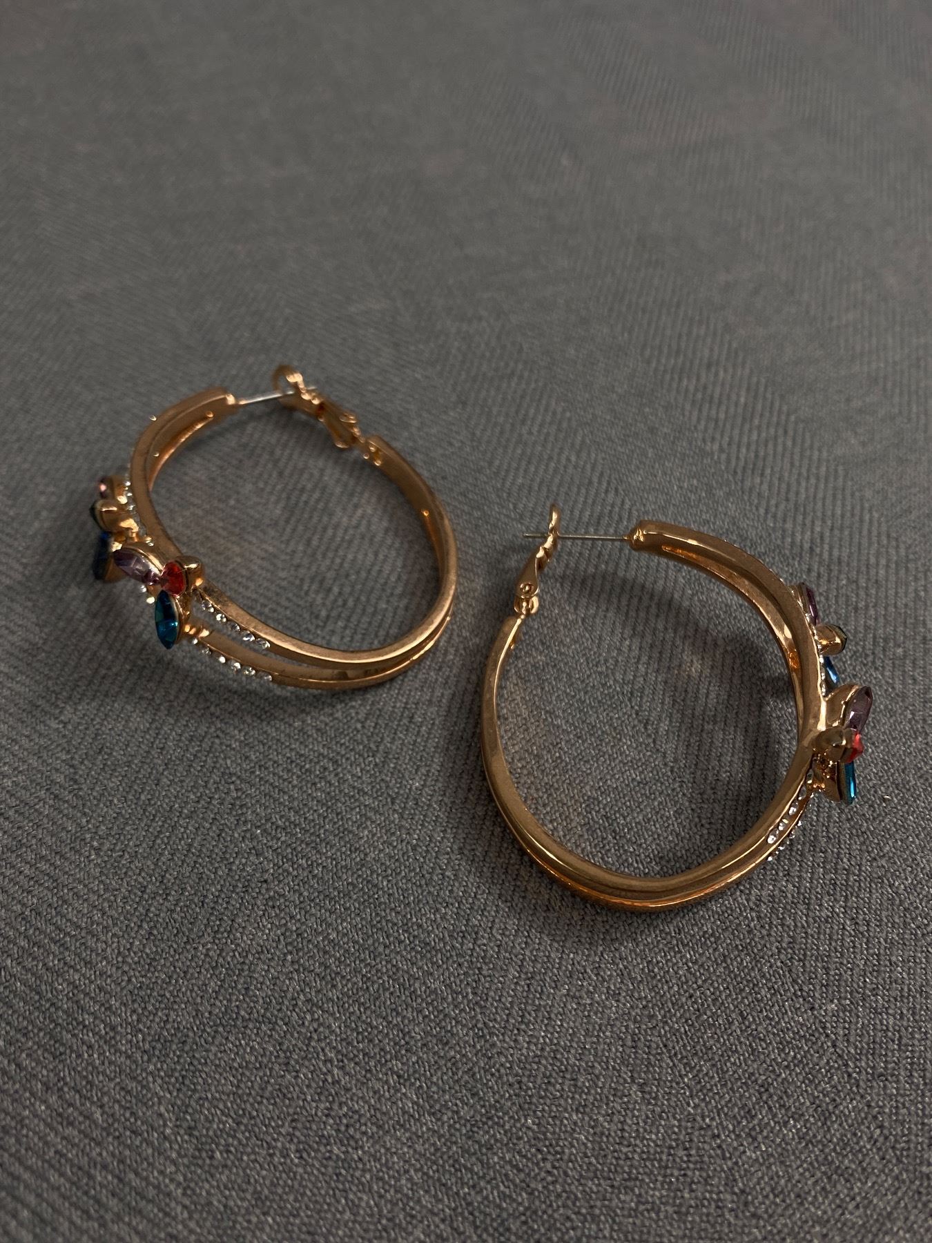 Rose Gold Coloured Earrings w/ Clear & Coloured Rhinestone Accents