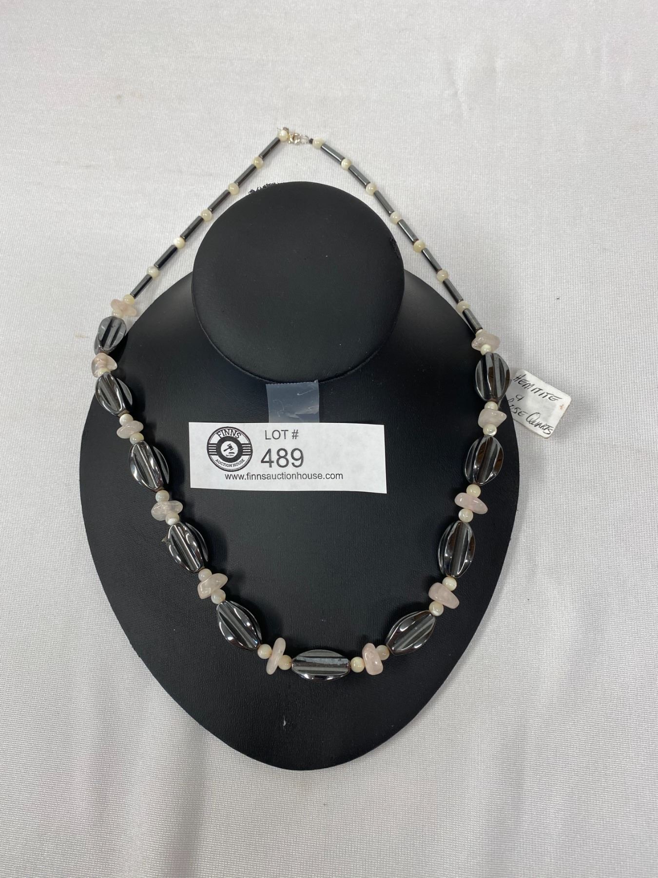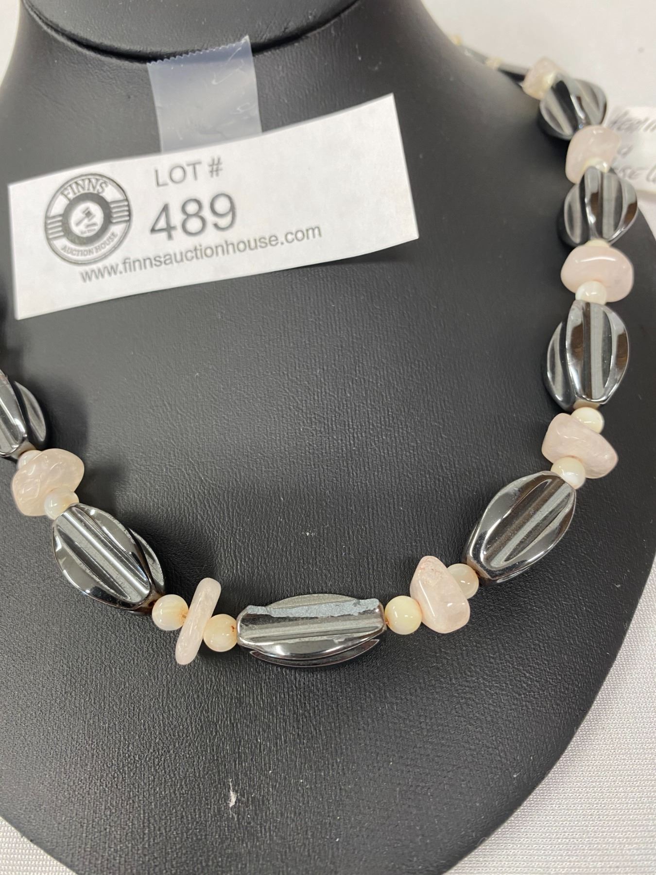 Rose Quarts And A Hemitite Necklace With 925 Clasp