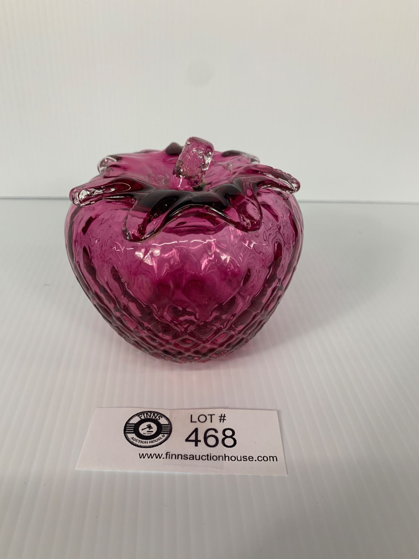;Rossi Signed Cranberry Glass Apple Paerweight Measures 3.75" H in Excellent Conditiion