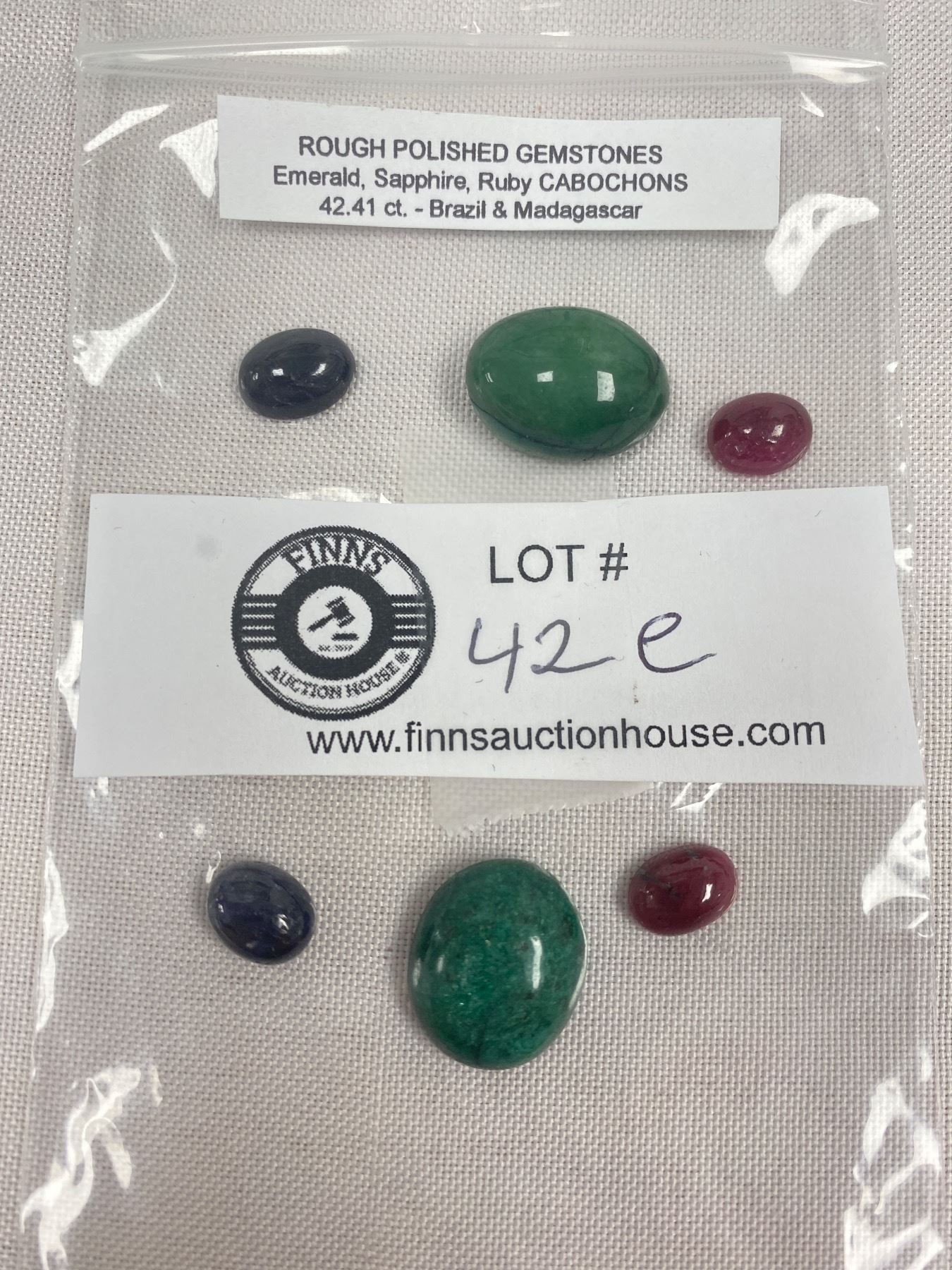Rough Polished Gemstones Emerald,Sapphire Ruby Cabochons 42.42 ct. Brazil and Madagascar