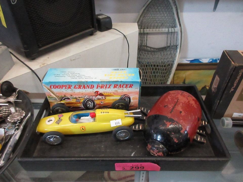 Cooper Grand Prix car has original box. Lady Bug is 5" x 7" x 3" toy.