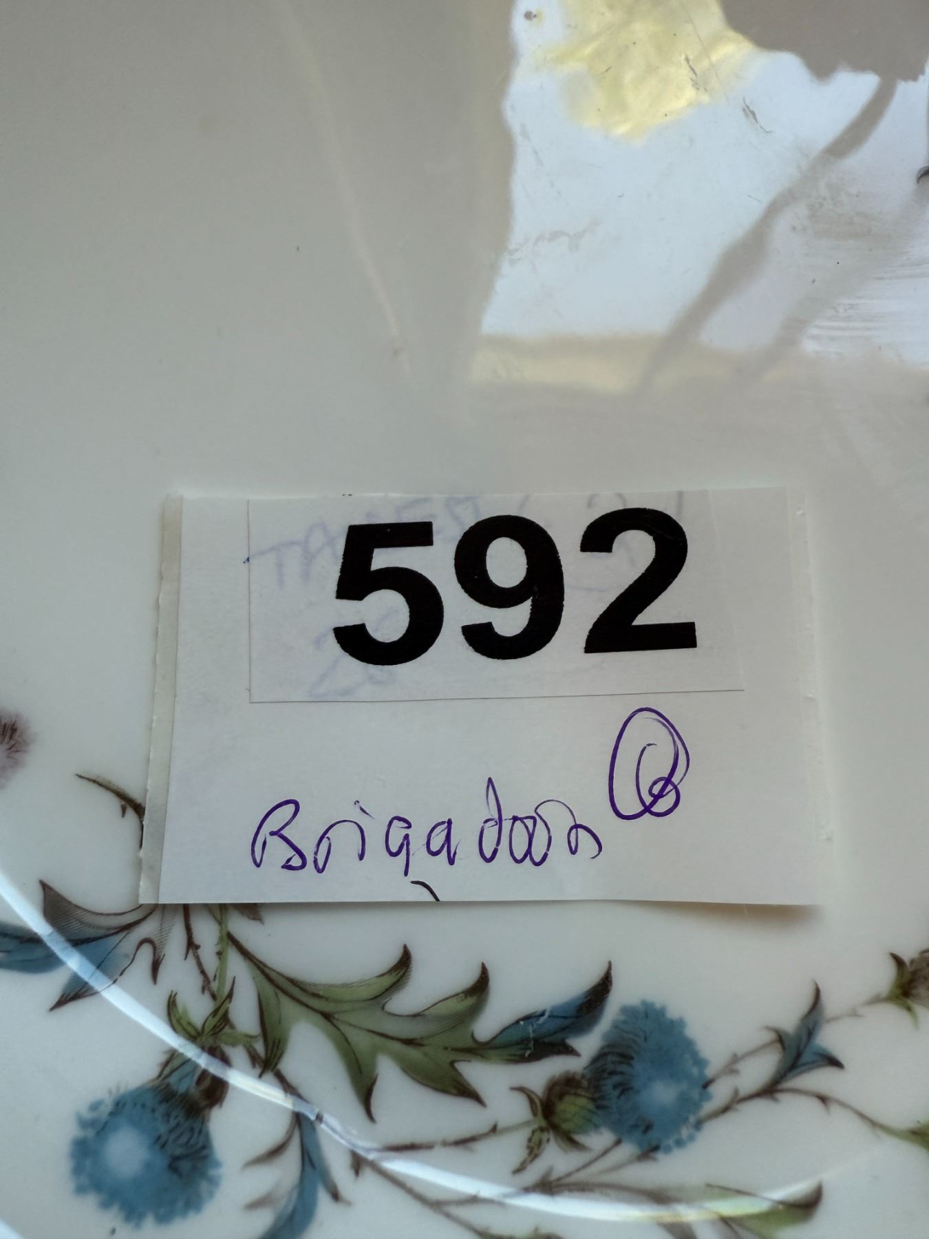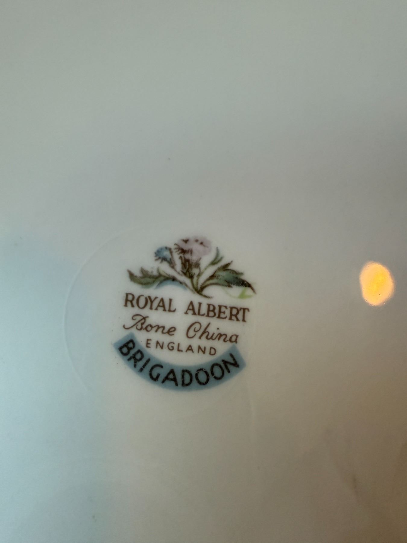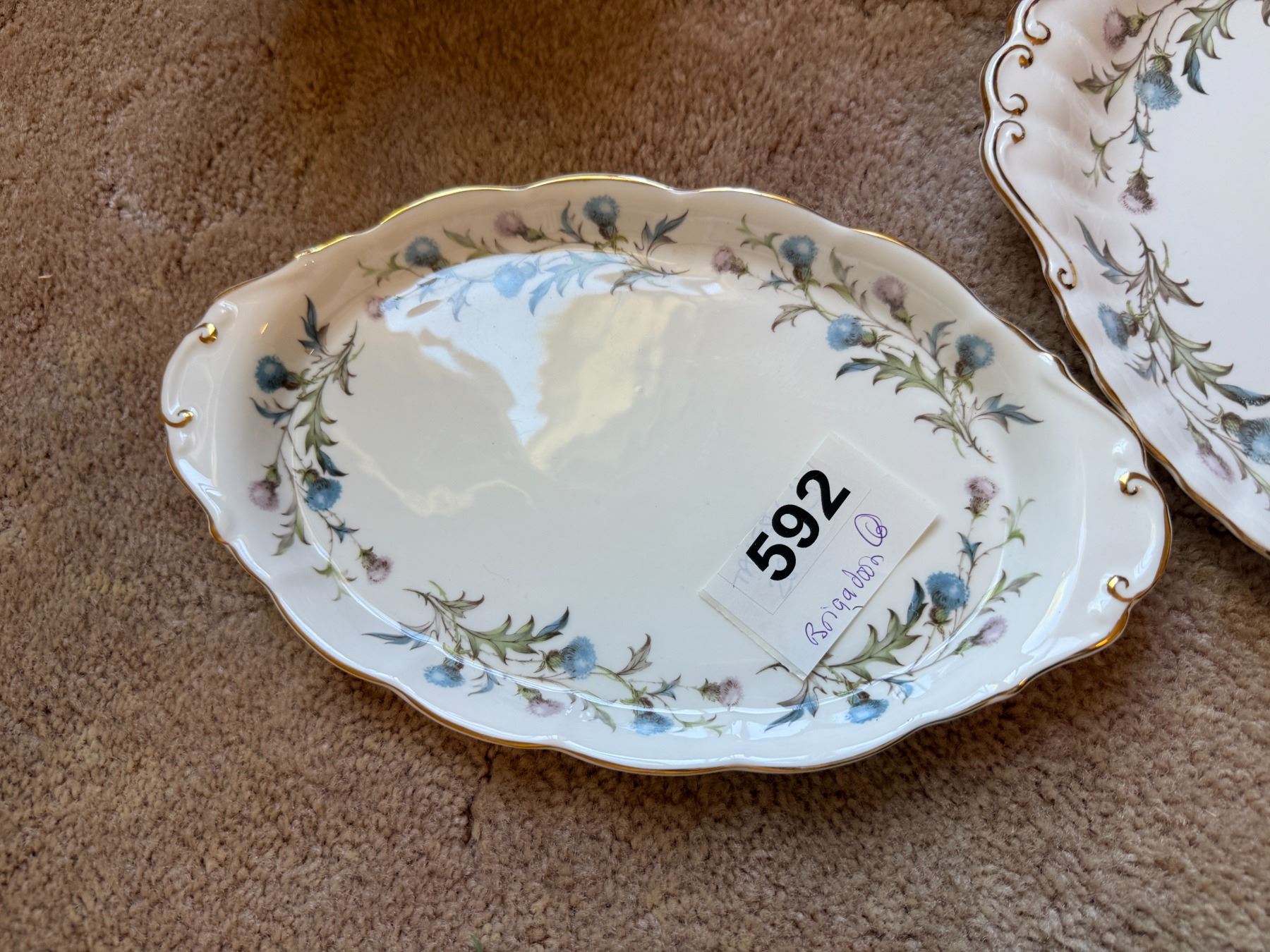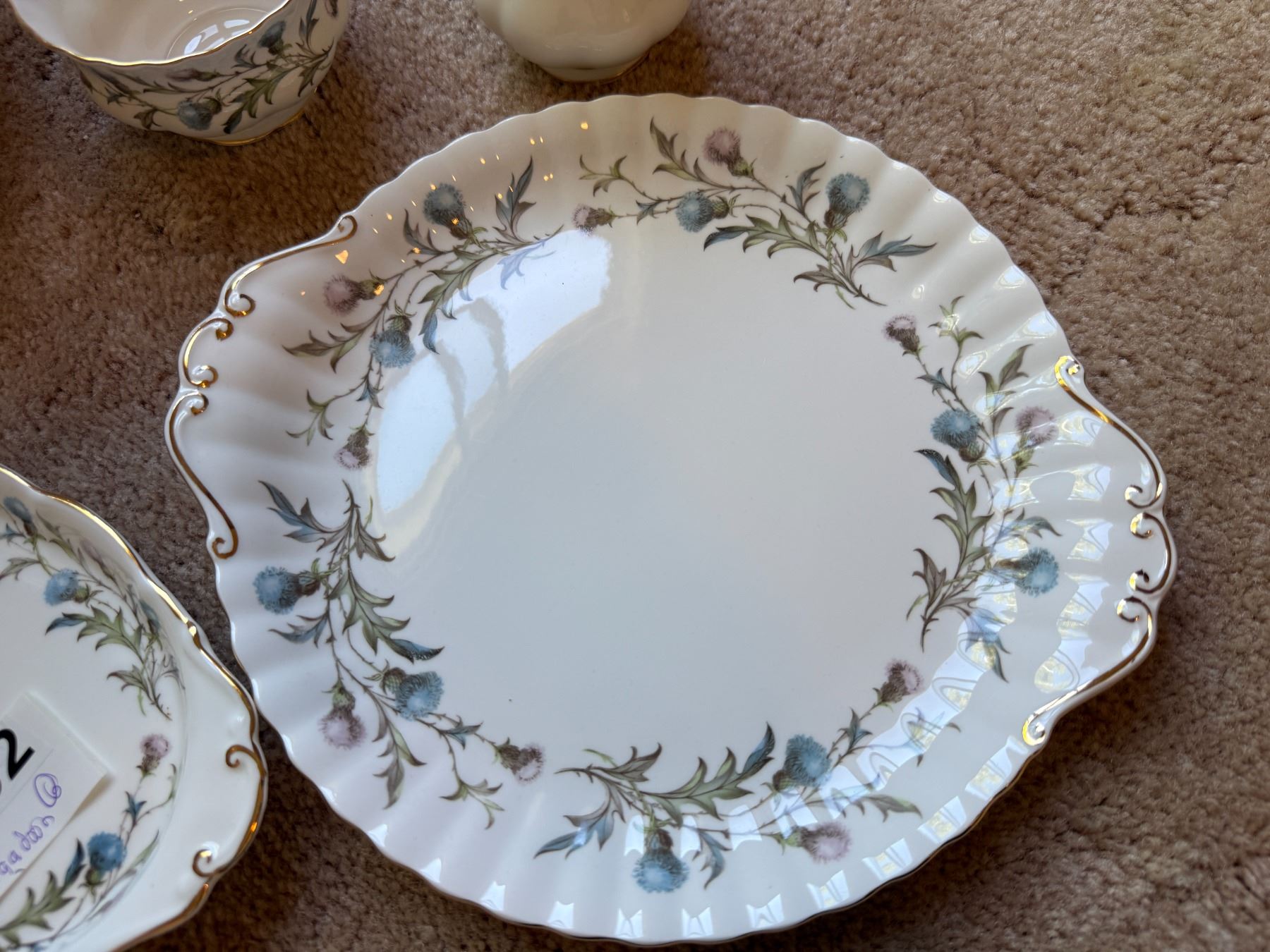 Teapot with lid, sugar and creamer, serving dishes. In bedroom 2.