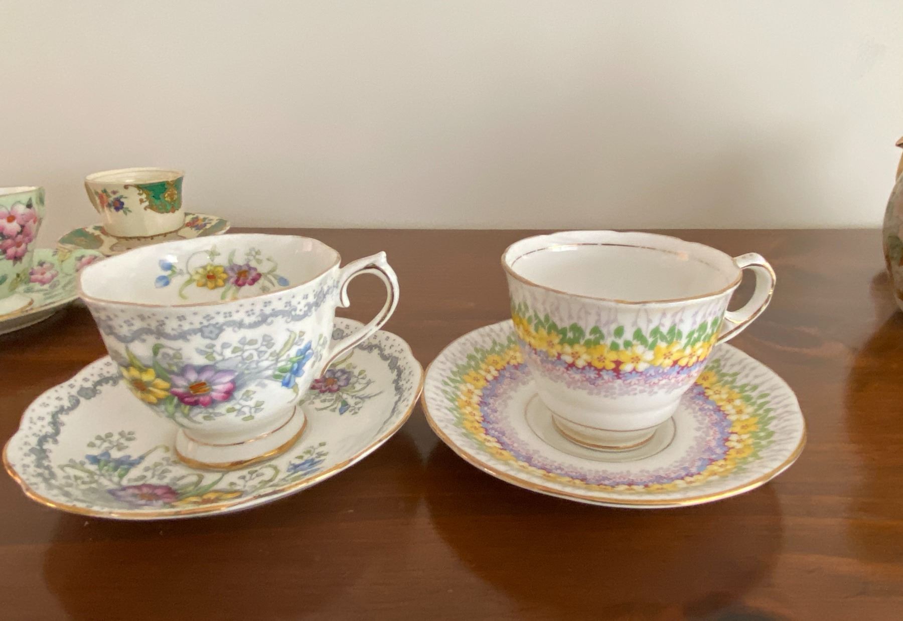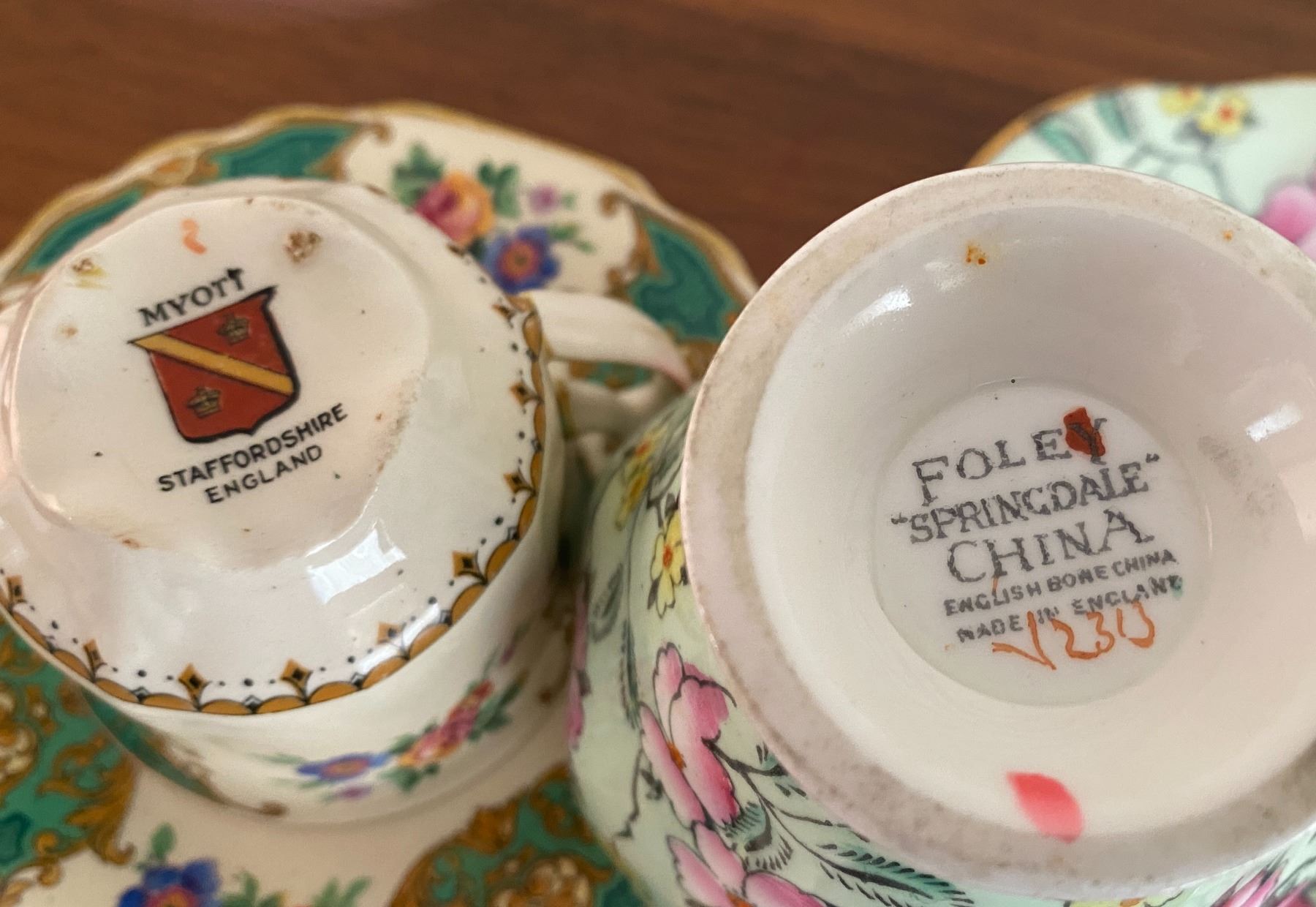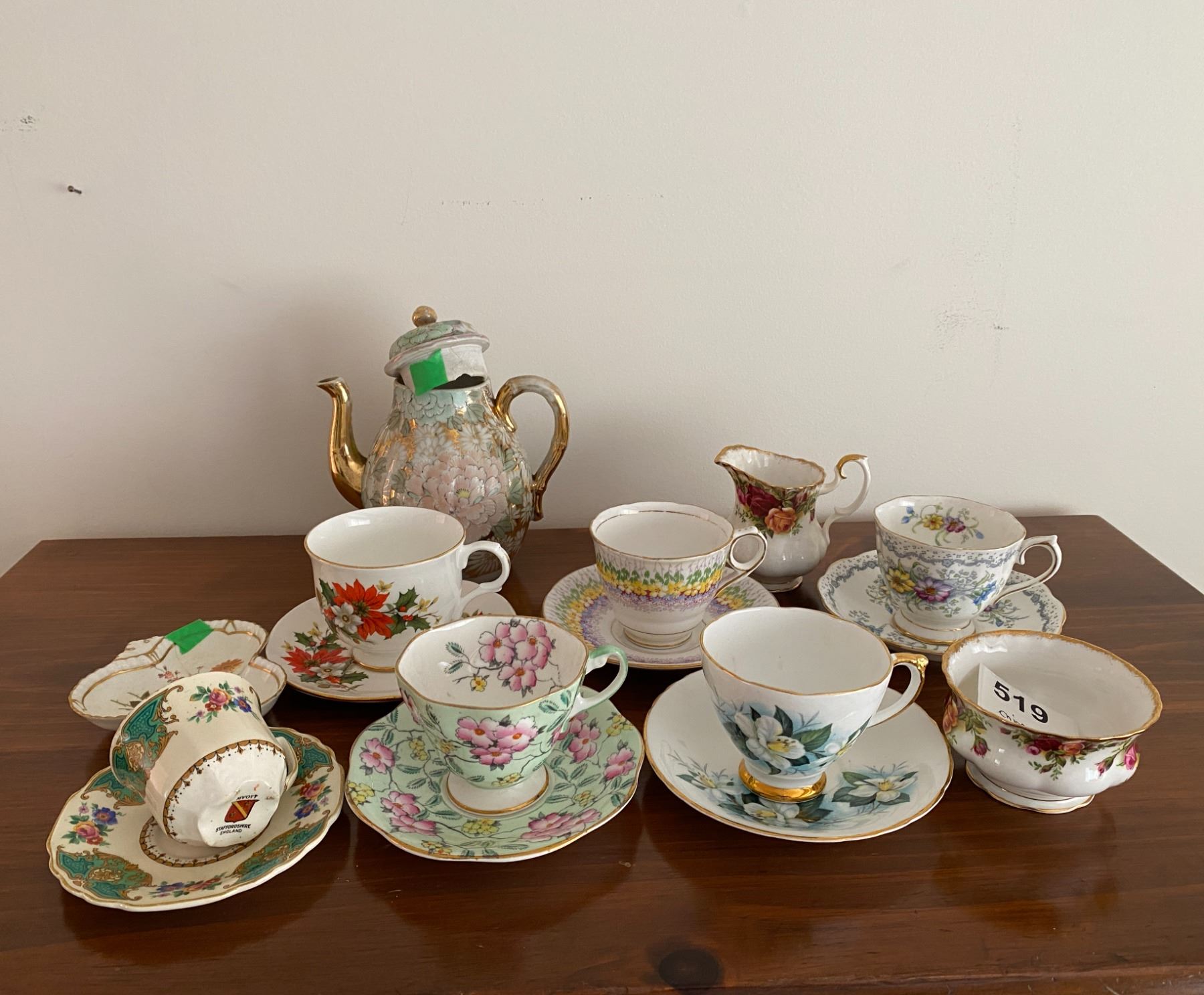 Royal Albert, Delphine, Sadler and other brands of china. Some chips.