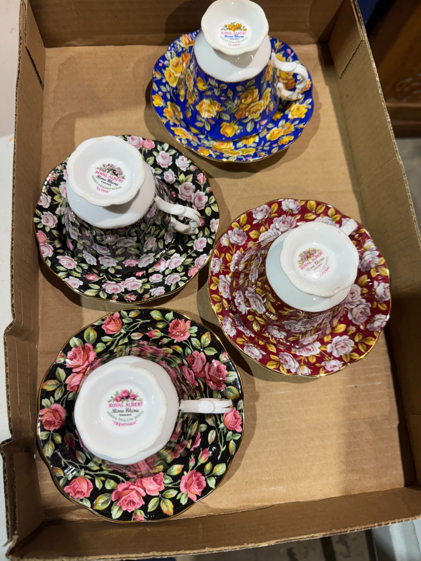 Royal Albert tea, cups, and saucers