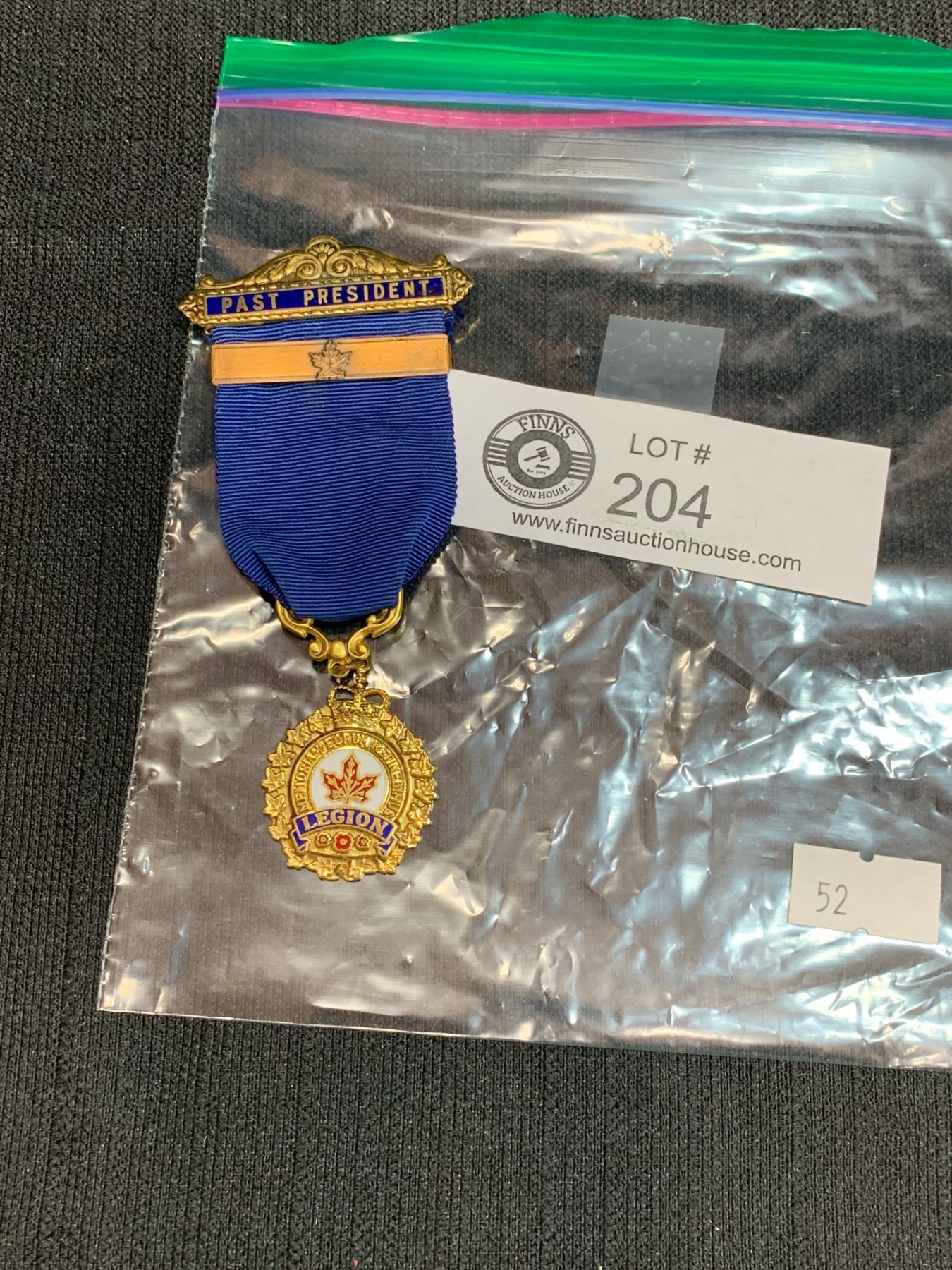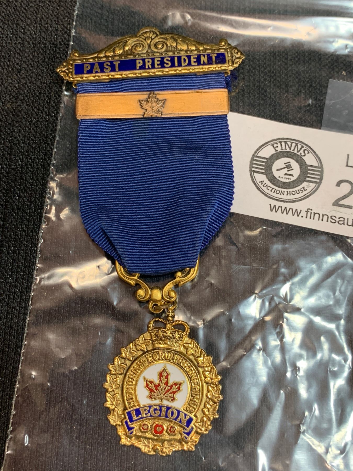 Royal Canadian Legion Pin. Past President Medal on a Blue Ribbon