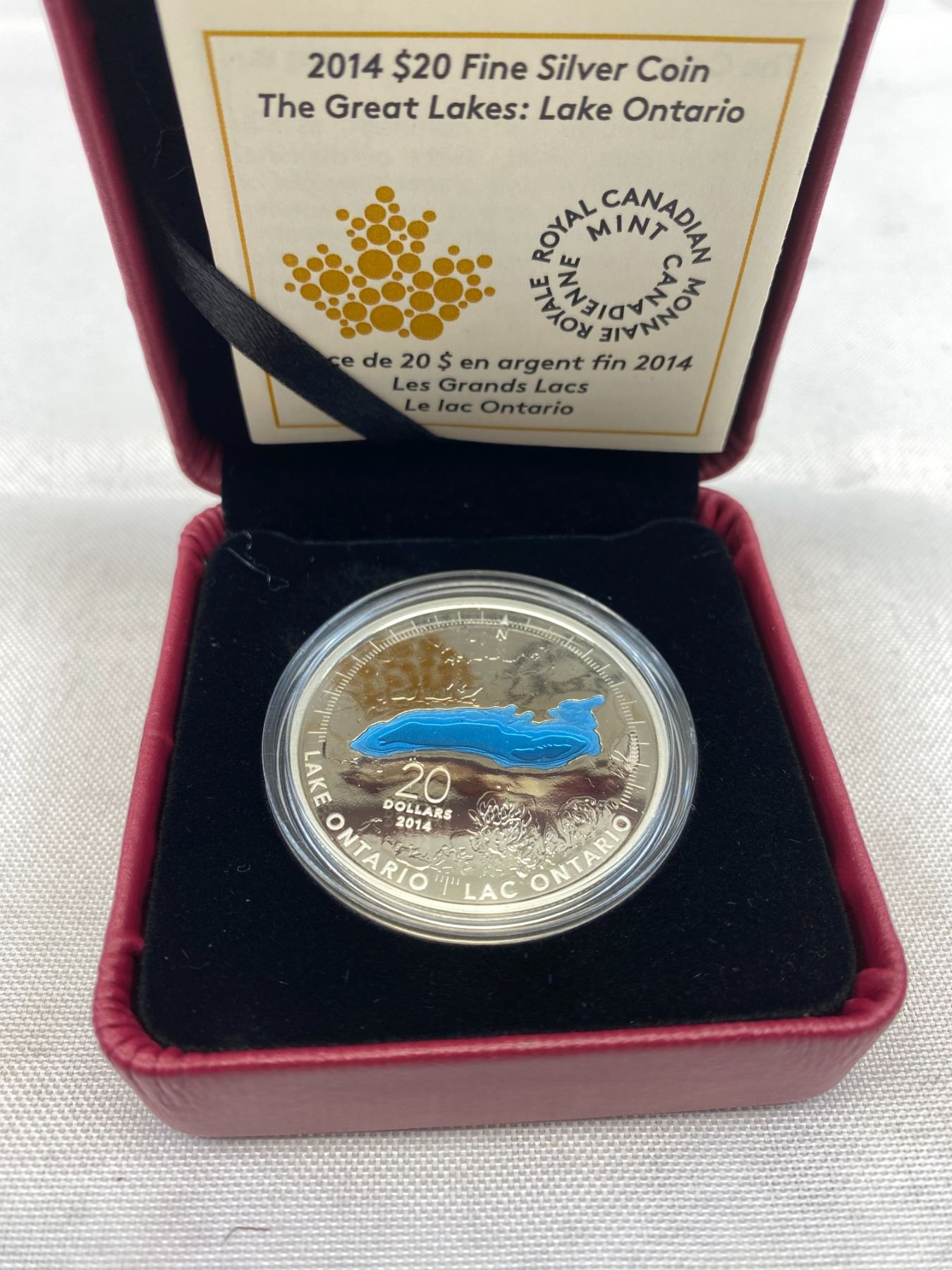 Royal Canadian Mint 2014 $20 Fine Silver Coin The Great Lake, Lake Ontario, In Box With COA