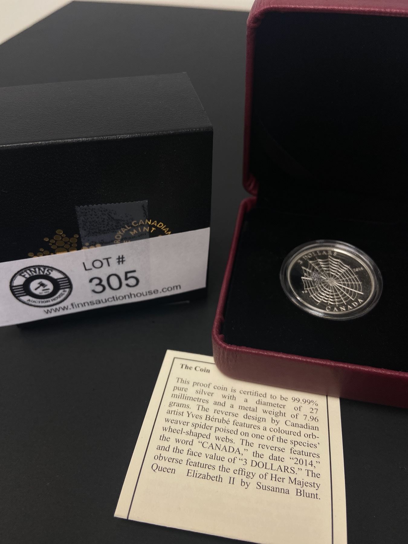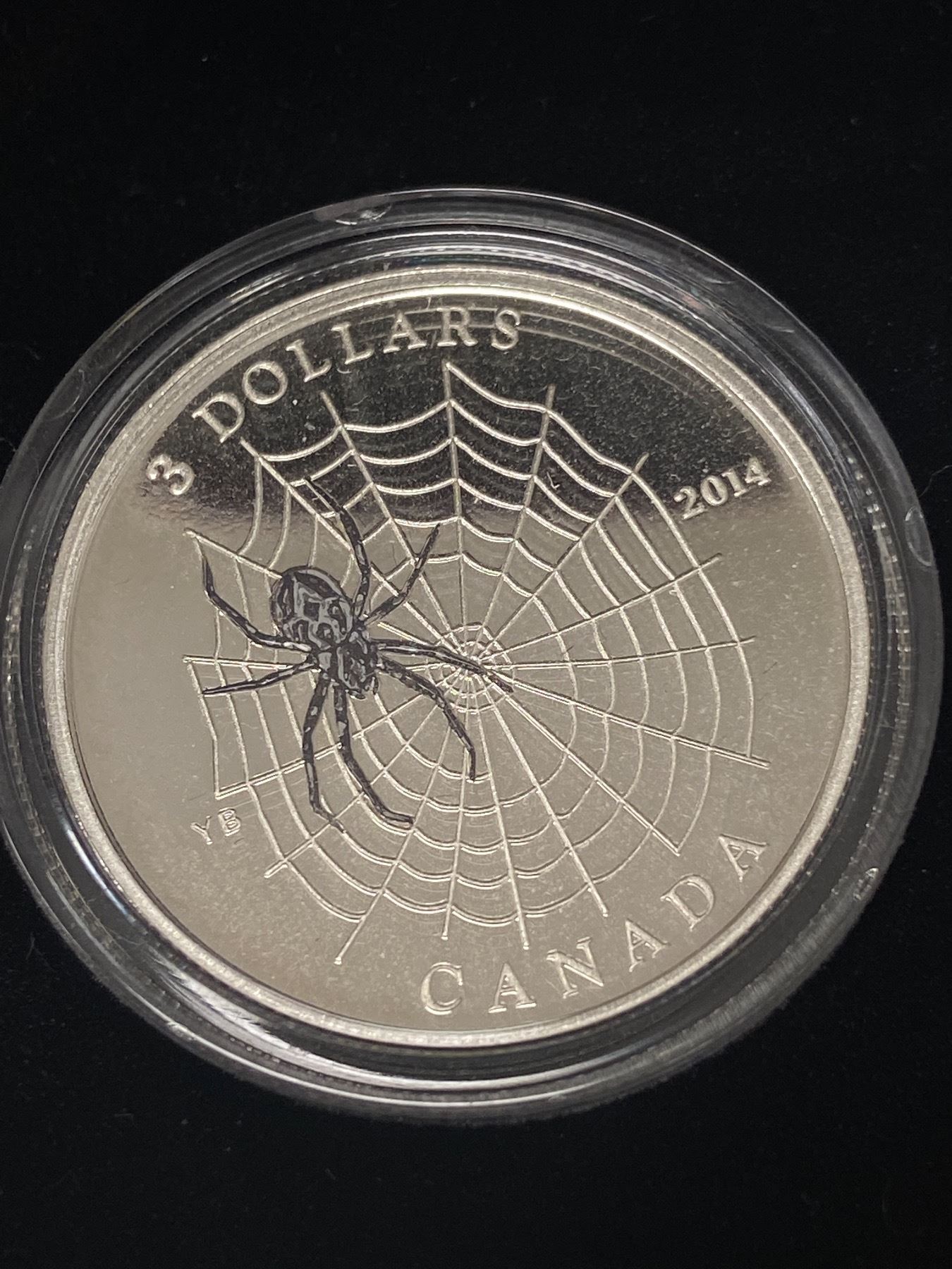 Royal Canadian Mint 2014 $3 Fine Silver Coin Spider & Web