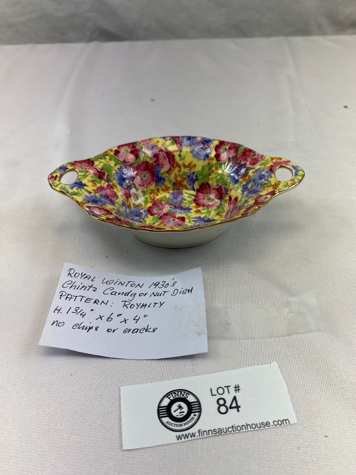 Royal Winton 1930's Chintz Candy Or Nut Dish, Pattern Royalty, No Chips Or Cracks, 2"x6"x4"