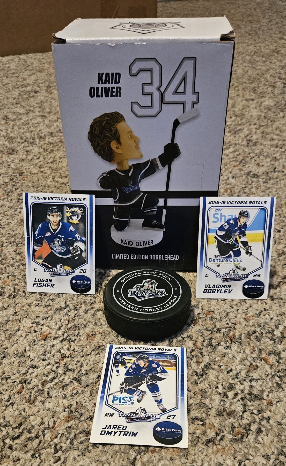 Kaid Oliver Bobble Head and puck - Victoria Royals