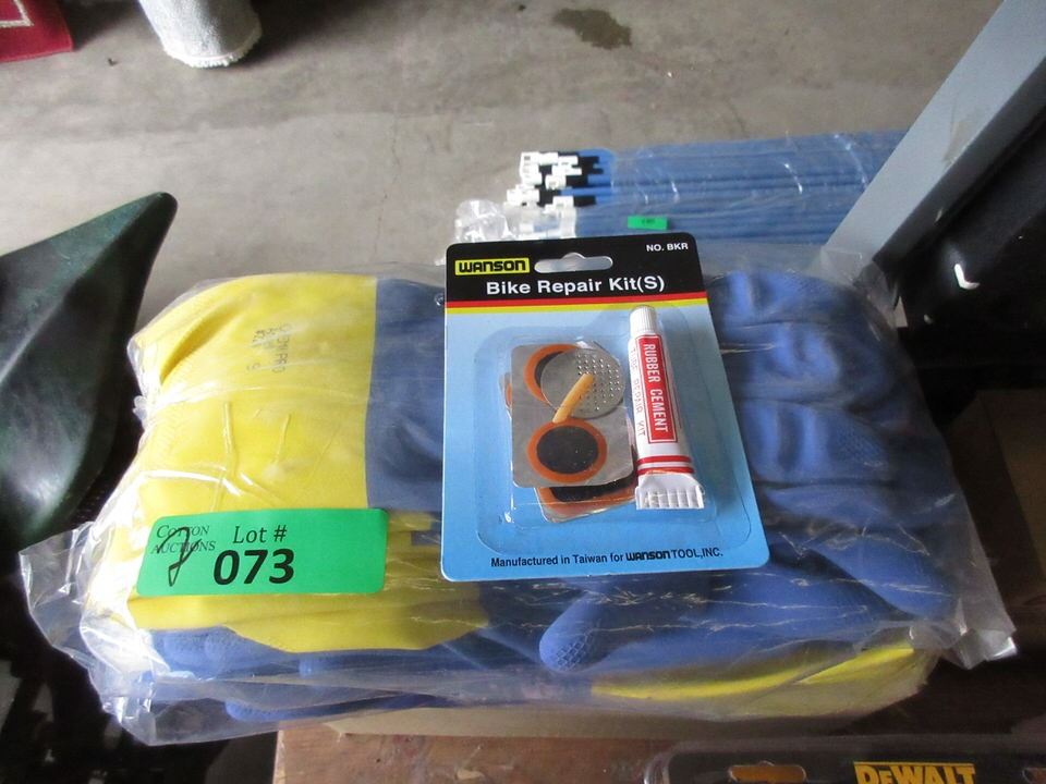 12 Pairs of rubber gloves & a box of patch bike repair kits.
