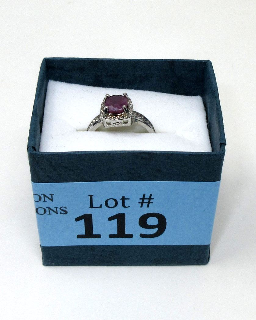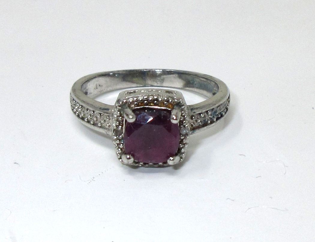 Square cut ruby & 2 shoulder diamonds. Retail value $300.