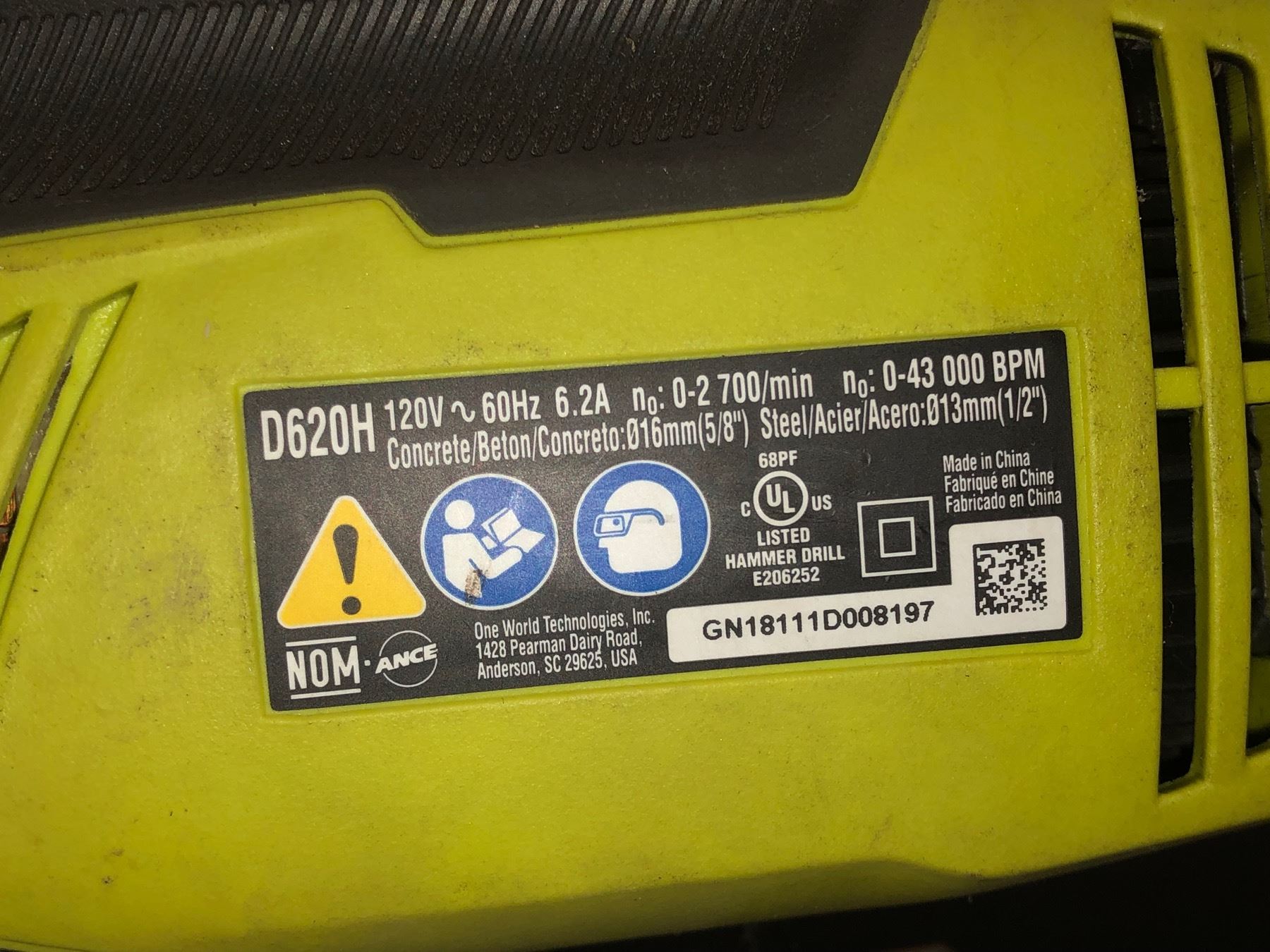 Ryobi 1/2" electric drill