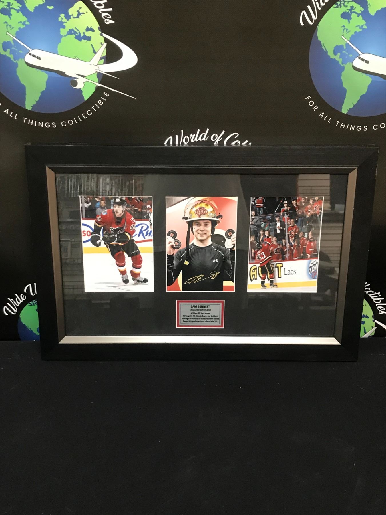 SAM BENNETT SIGNED AND CUSTOM FRAMED CALGARY FLAMES DISPLAY WITH COA