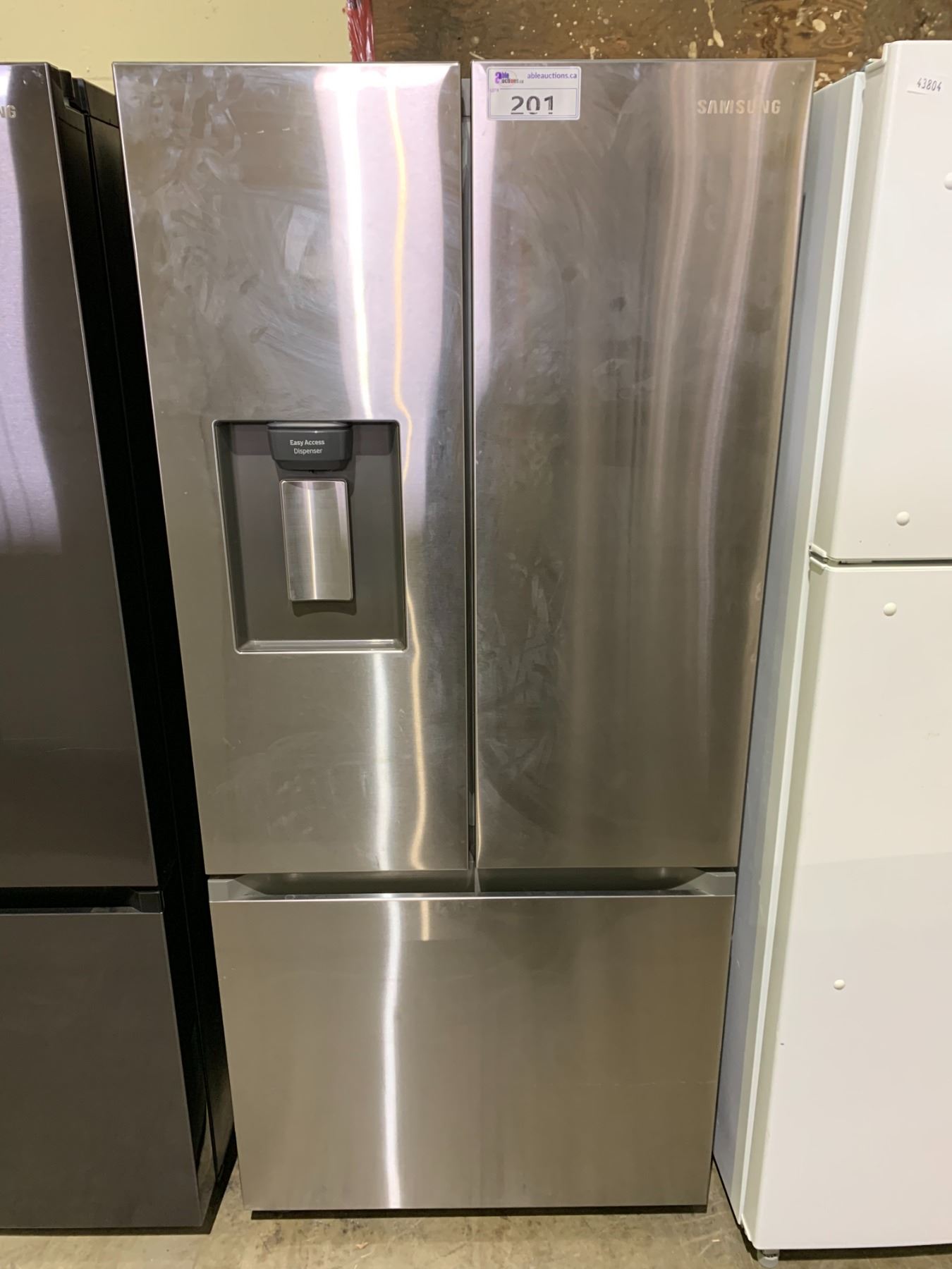 SAMSUNG APARTMENT SIZE STAINLESS STEEL FRENCH DOOR FRIDGE WITH ROLLOUT FREEZER & WATER/ICE DISPENSER
