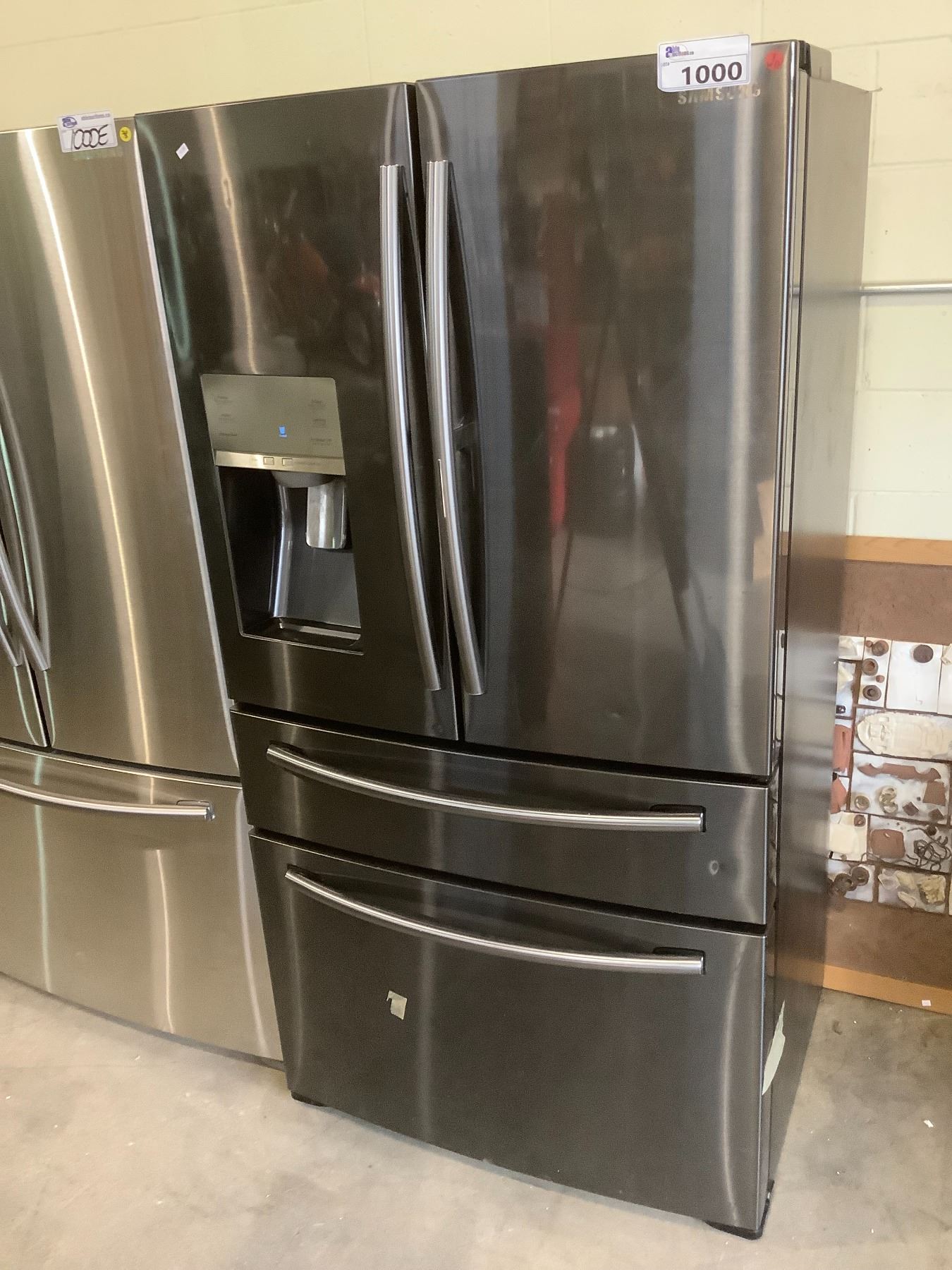 SAMSUNG BLACK FRENCH DOOR FRIDGE MODEL RF22KREDBSG VISIBLE DAMAGE