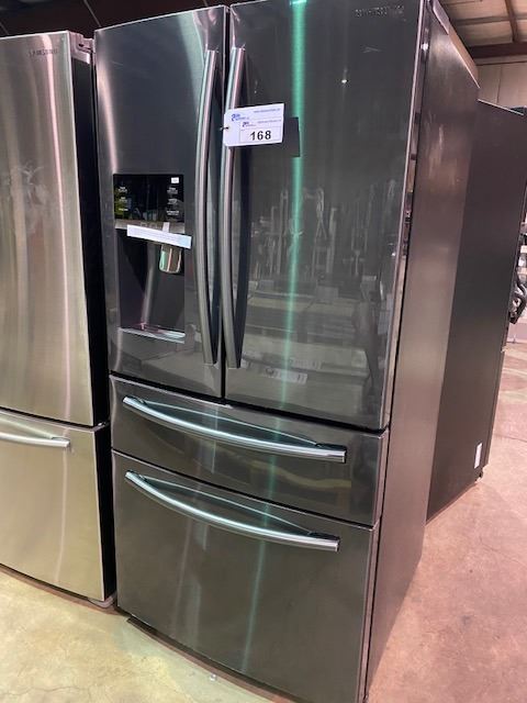 SAMSUNG BLACK STAINLESS STEEL FRENCH DOOR 25 CU.FT. REFRIGERATOR WITH WATER AND ICE DISPENSER 2 DRAWER ROLL OUT FREEZER RF25HMEDBSG