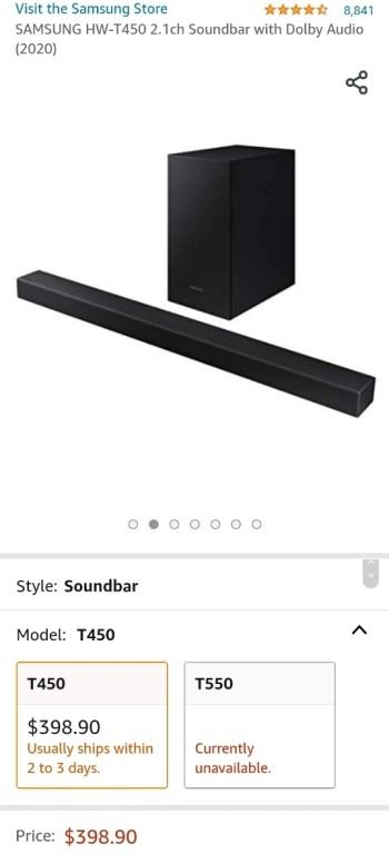 SAMSUNG HW-T450 2.1ch Soundbar with Dolby Audio Retail $398.90