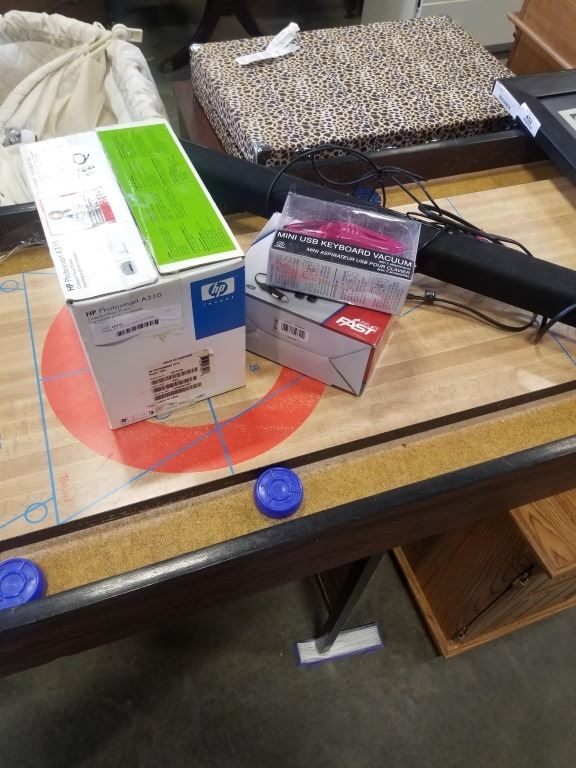 SAMSUNG SOUND BAR,COLEMAN QUICKPUMP, HP COMPACT PHOTO PRINTER AND USB KEYBOARD VACUUM