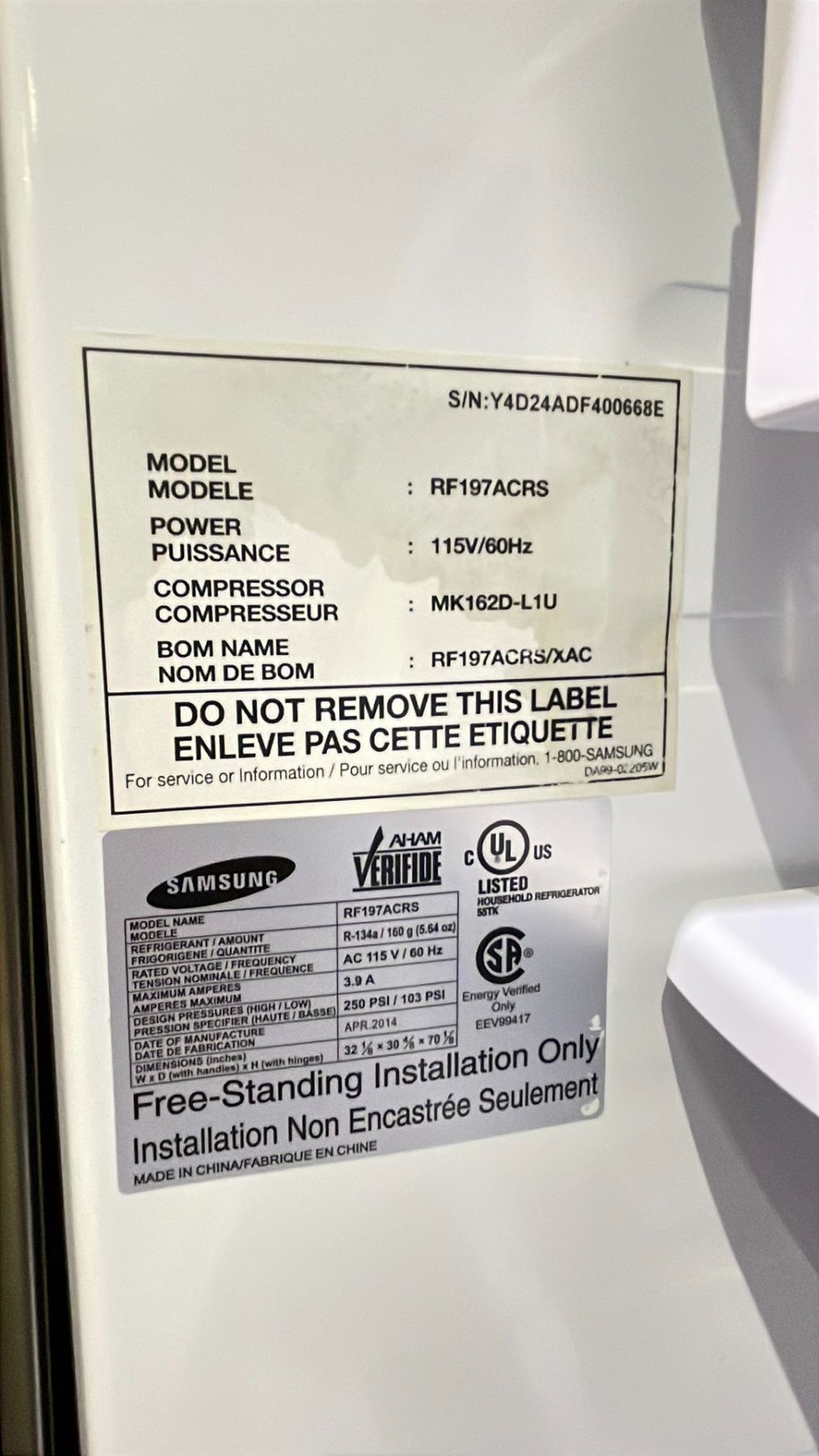 SAMSUNG STAINLESS STEEL FRENCH DOOR FRIDGE WITH ROLLOUT FREEZER 32"W